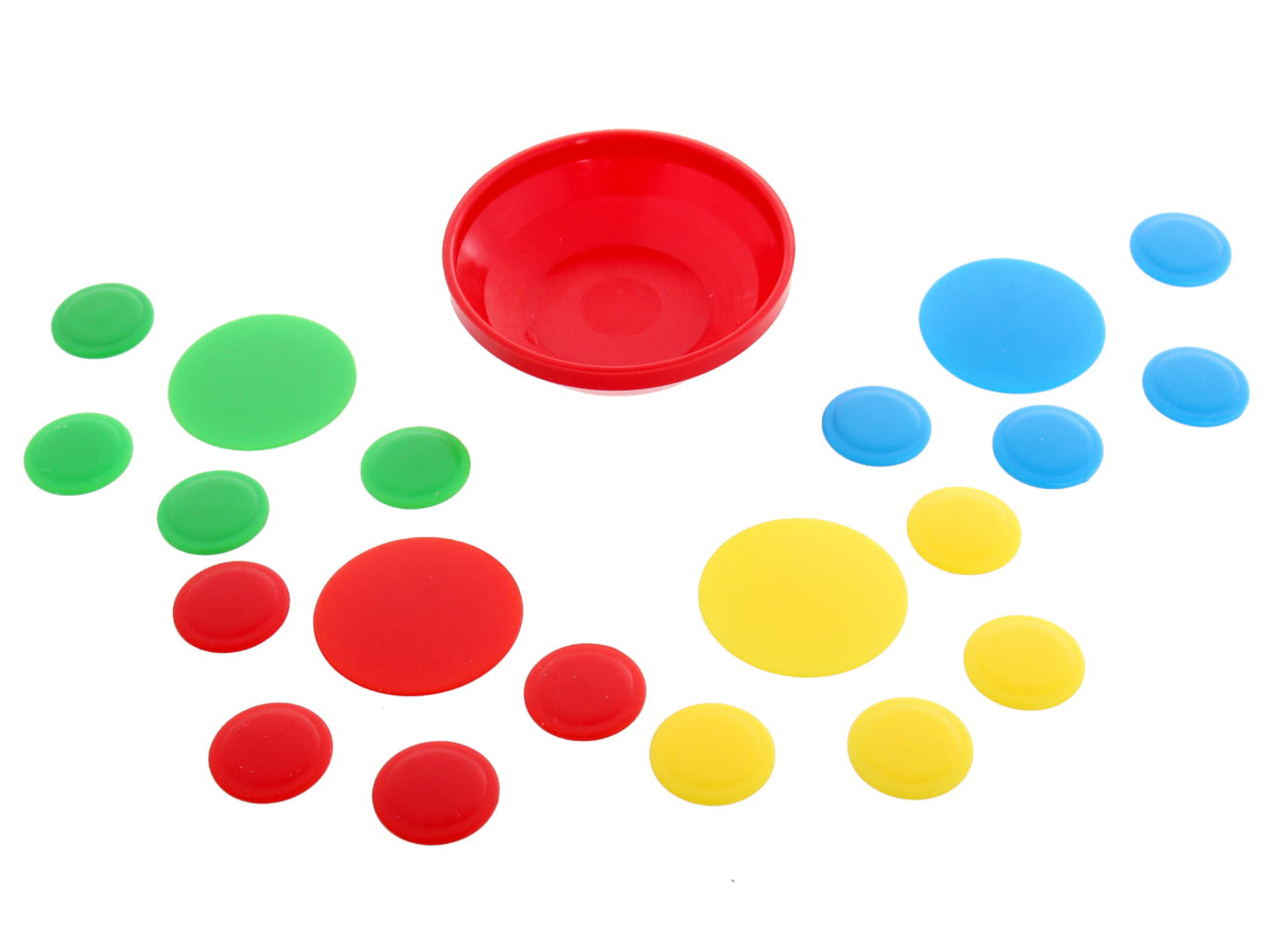 - 4 komplety krążków "pchełek" w 4 kolorach (20 pchełek)