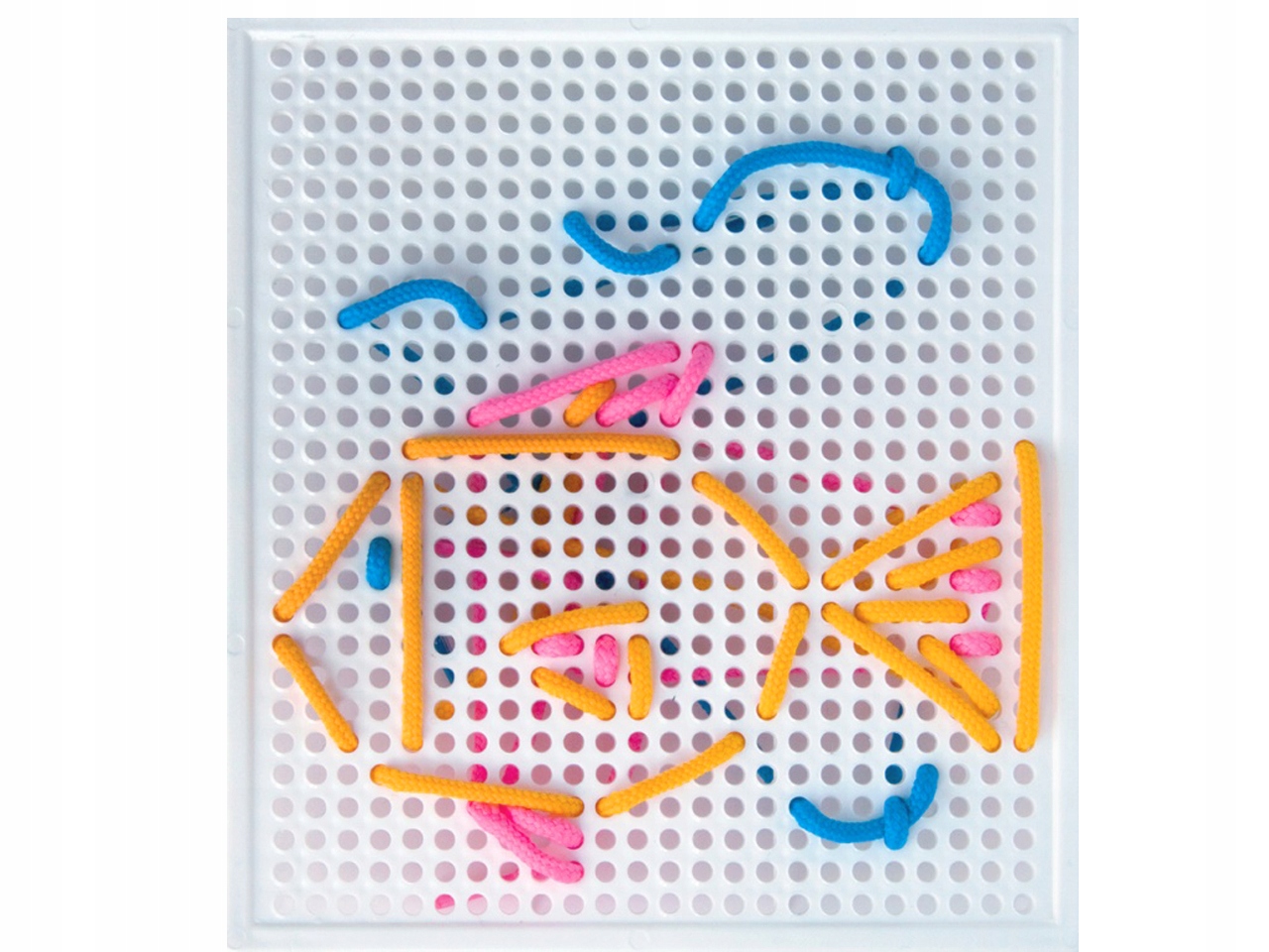 polega na przewlekaniu kolorowych linek przez otwory