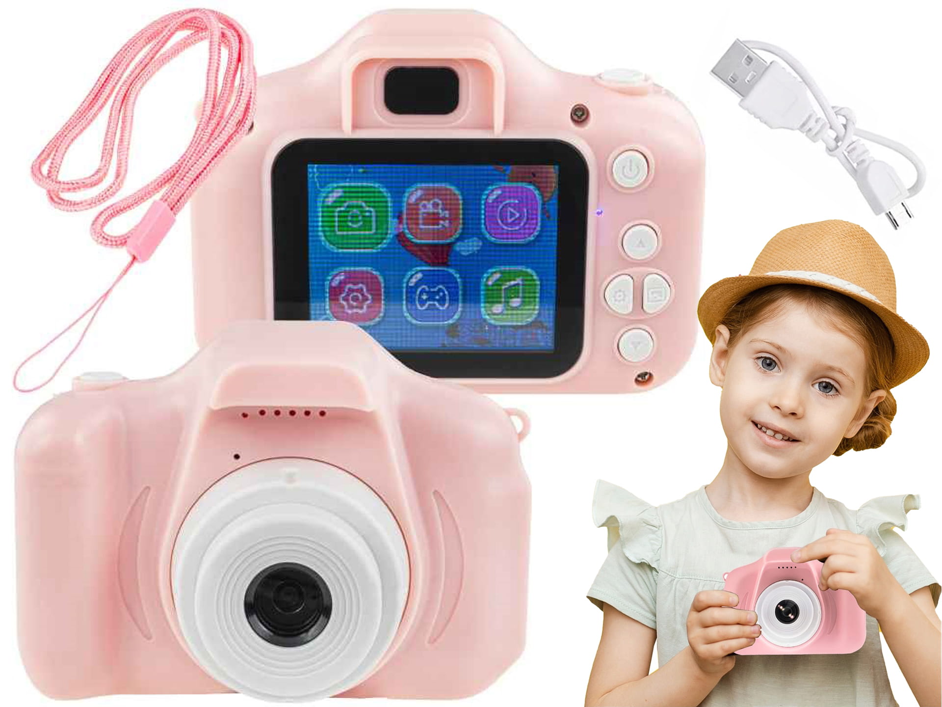 APARAT CYFROWY FOTOGRAFICZNY ZABAWKA DLA DZIECI KAMERA + 4 GRY różowy