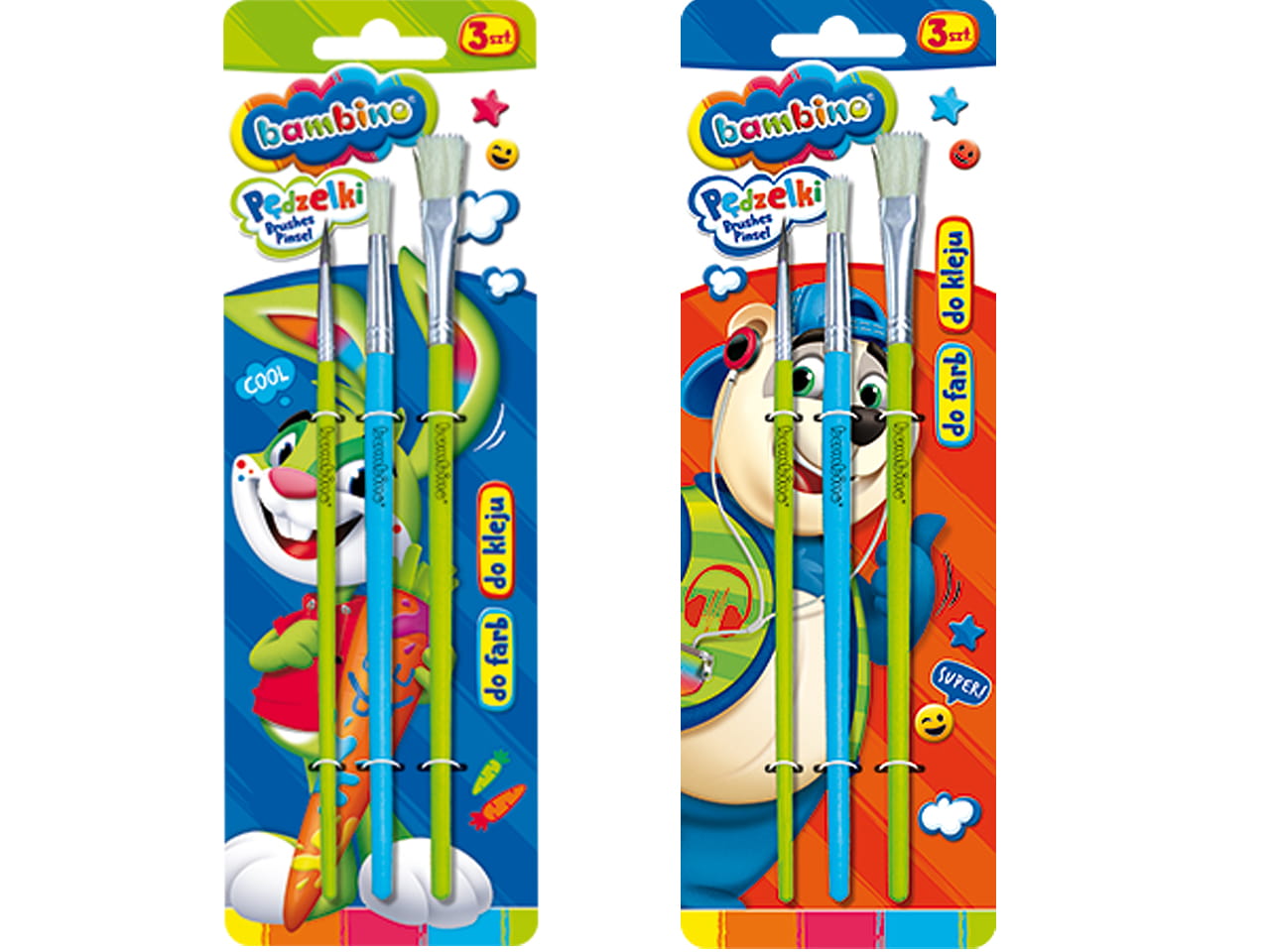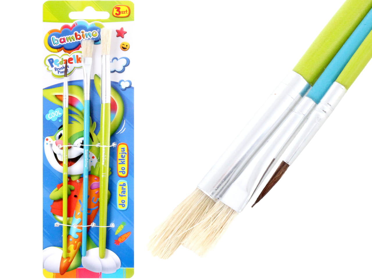BAMBINO PĘDZELKI DO FARB I DO KLEJU 3 SZTUKI Szkolne