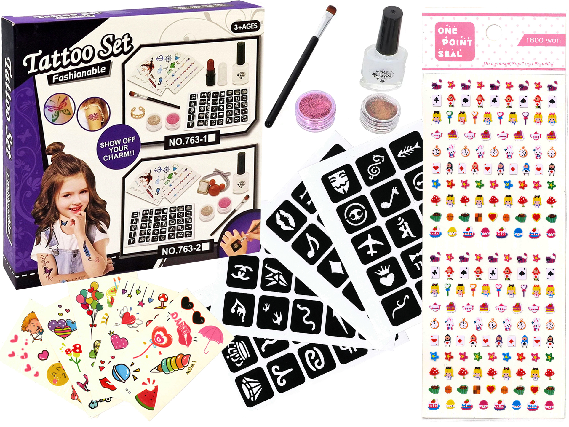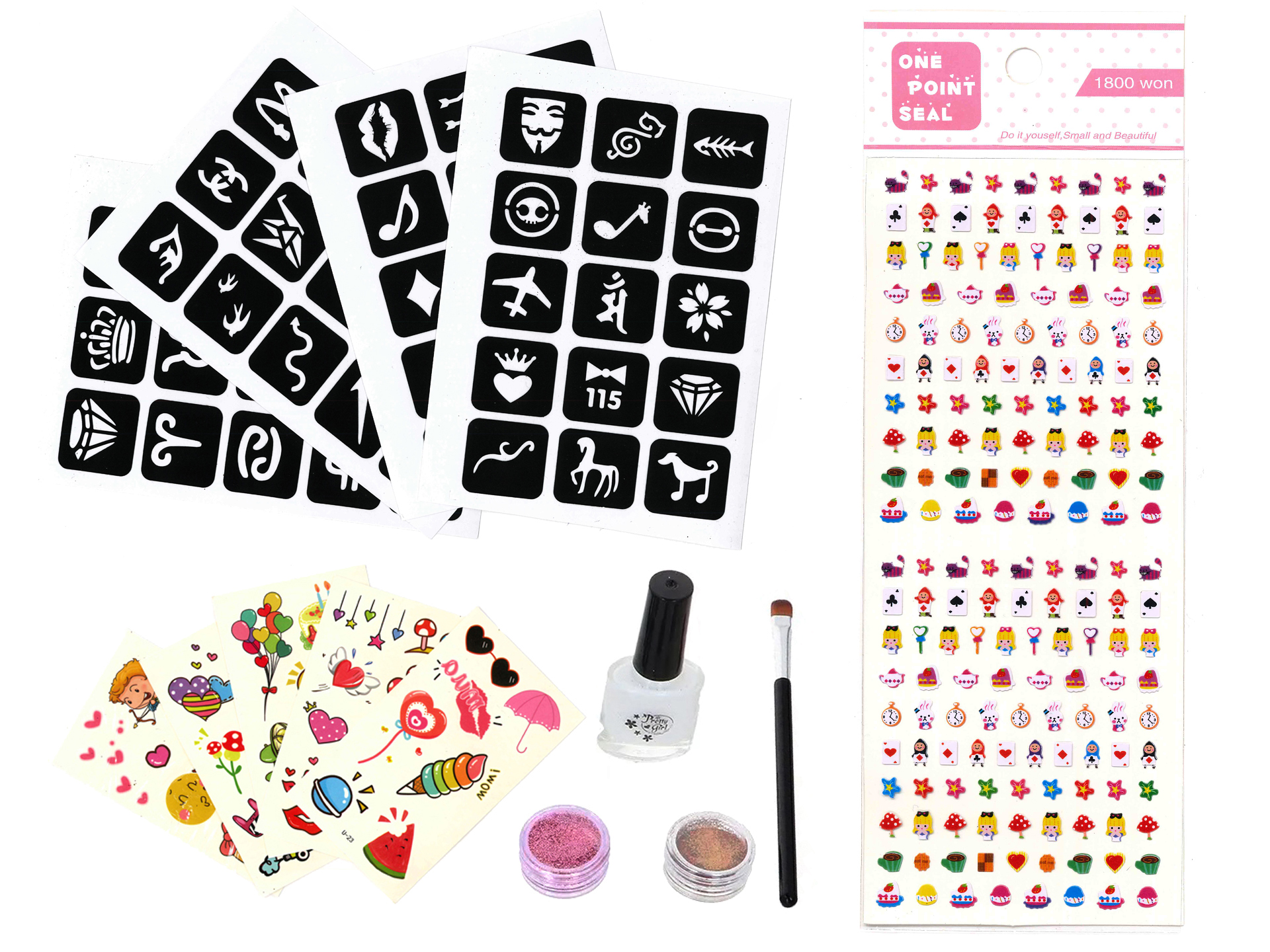 BROKATOWE TATUAŻE Zestaw do Robienia TATUAŻY Z BROKATEM Szablony Naklejki