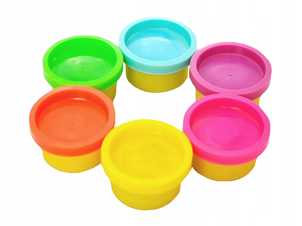 - 6 pojemników ciastoliny (fioletowy, zielony, pomarańczowy,
