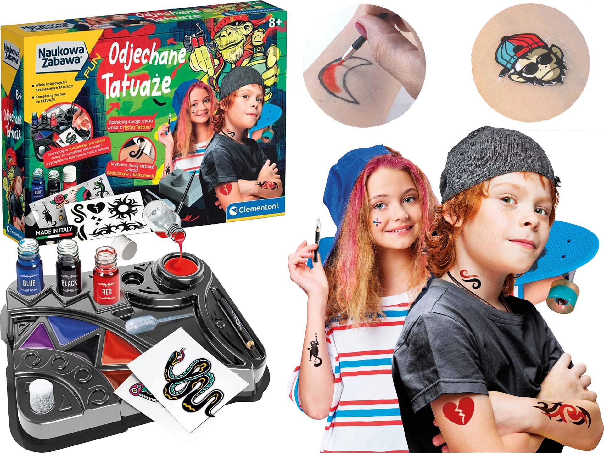 CLEMENTONI Odjechane TATUAŻE Naukowa ZABAWA Zestaw tatuaż
