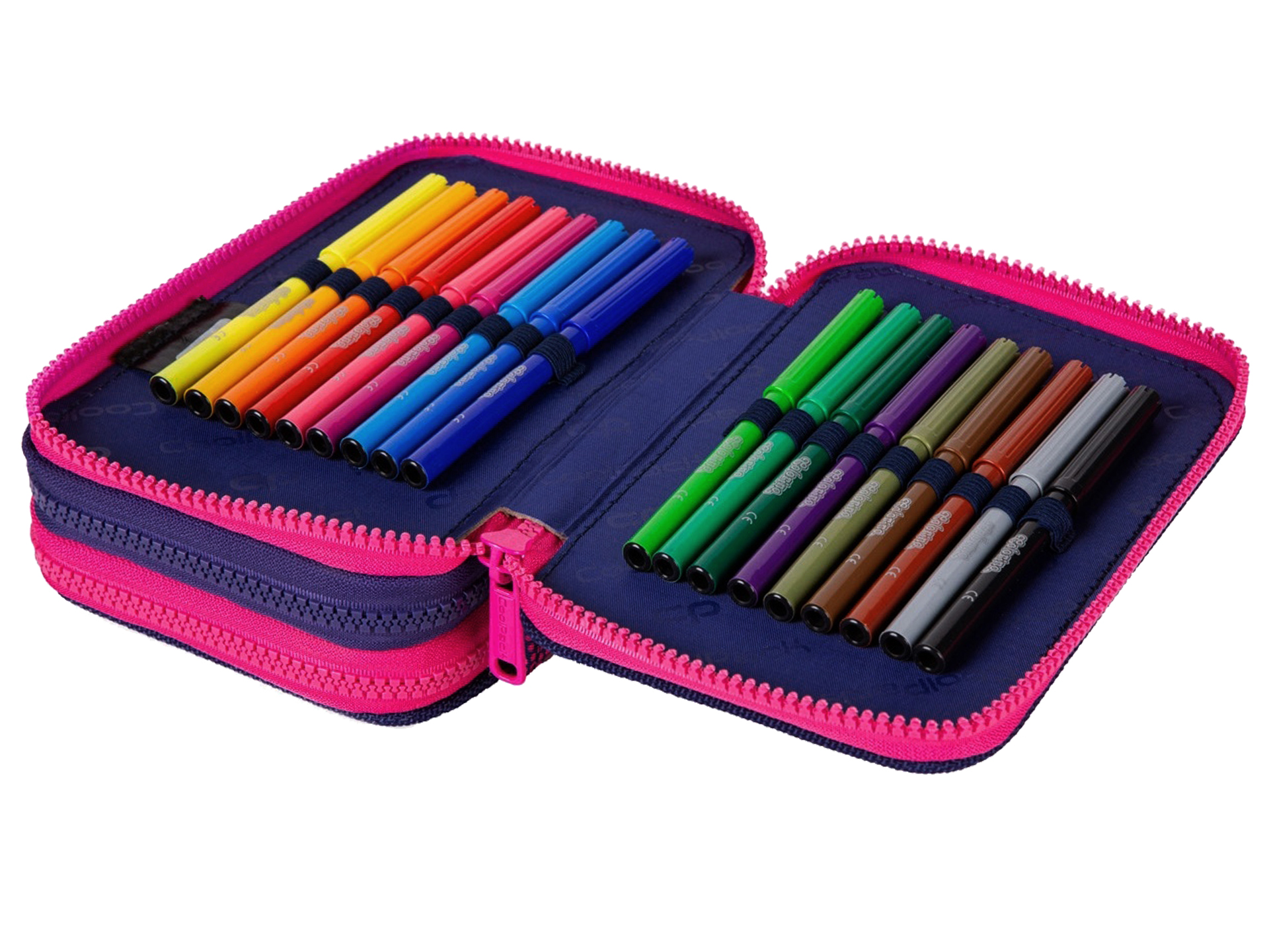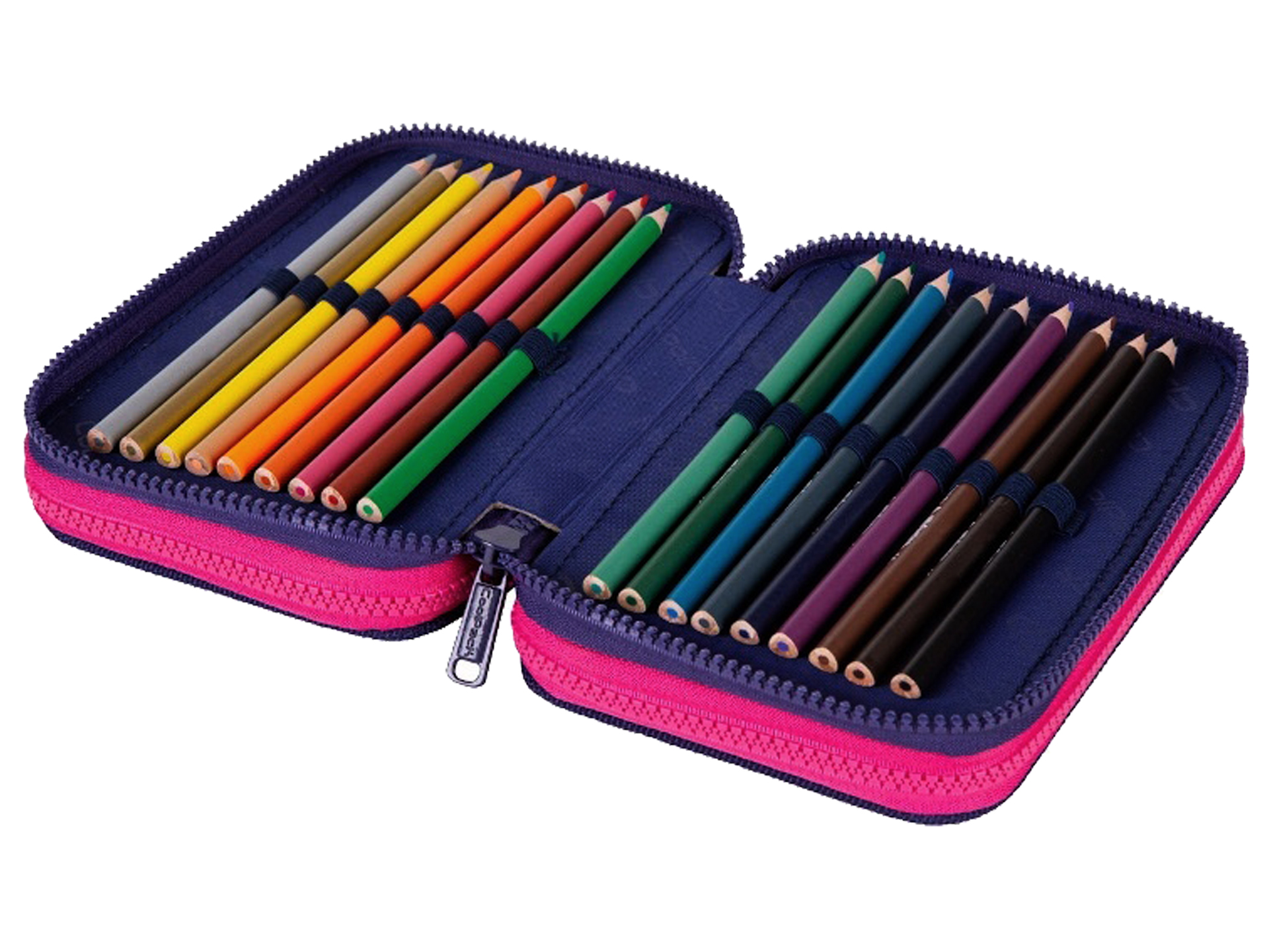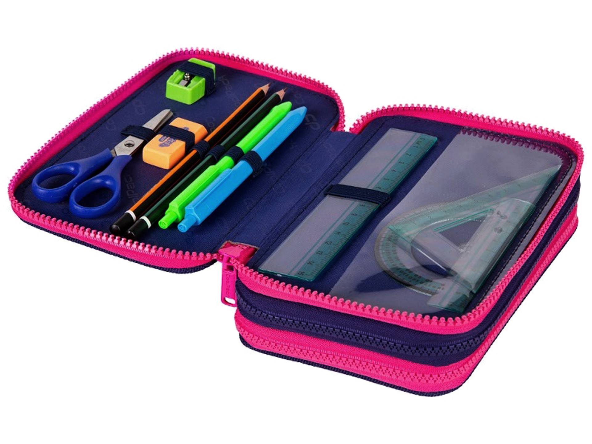 Potrójny piórnik z wyposażeniem wykonany jest z trwałych