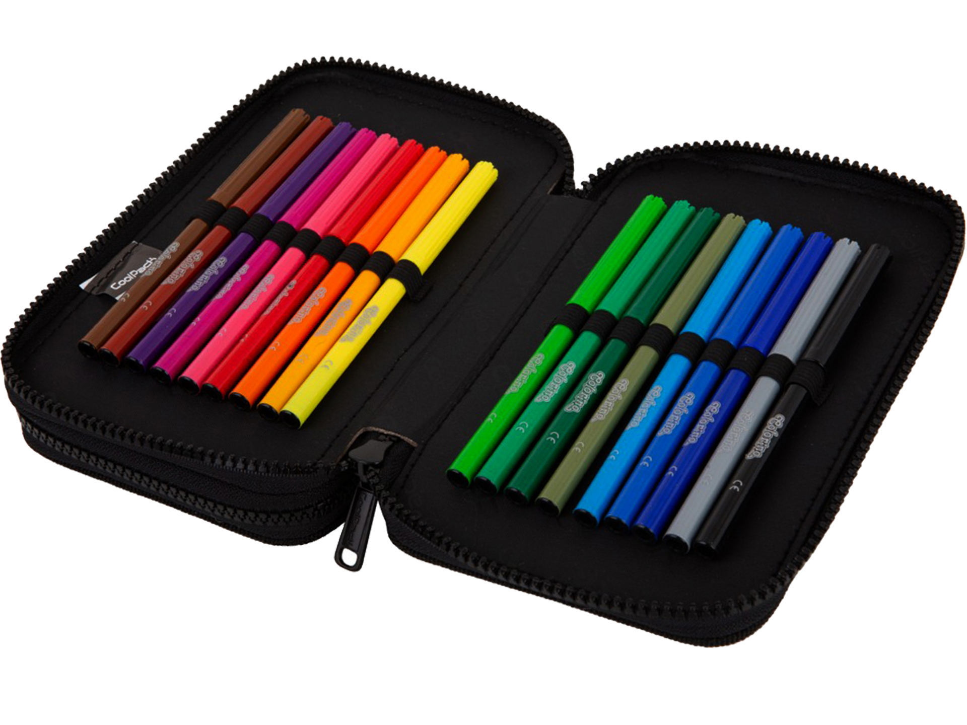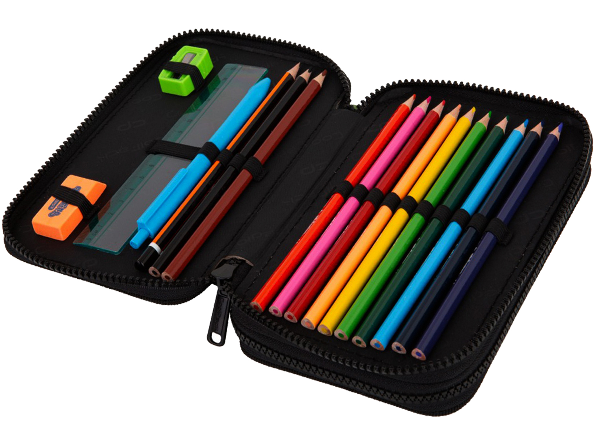 Podwójny piórnik z wyposażeniem wykonany jest z trwałych
