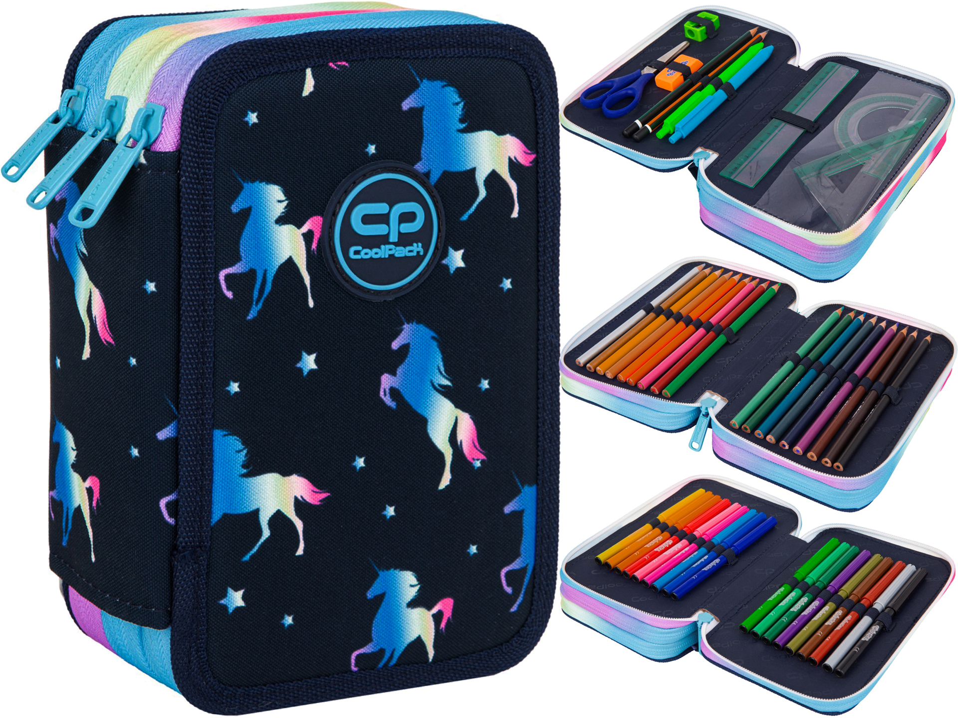 COOLPACK Potrójny Piórnik z Wyposażeniem JUMPER 3 Blue Unicorn TRZYKOMOROWY