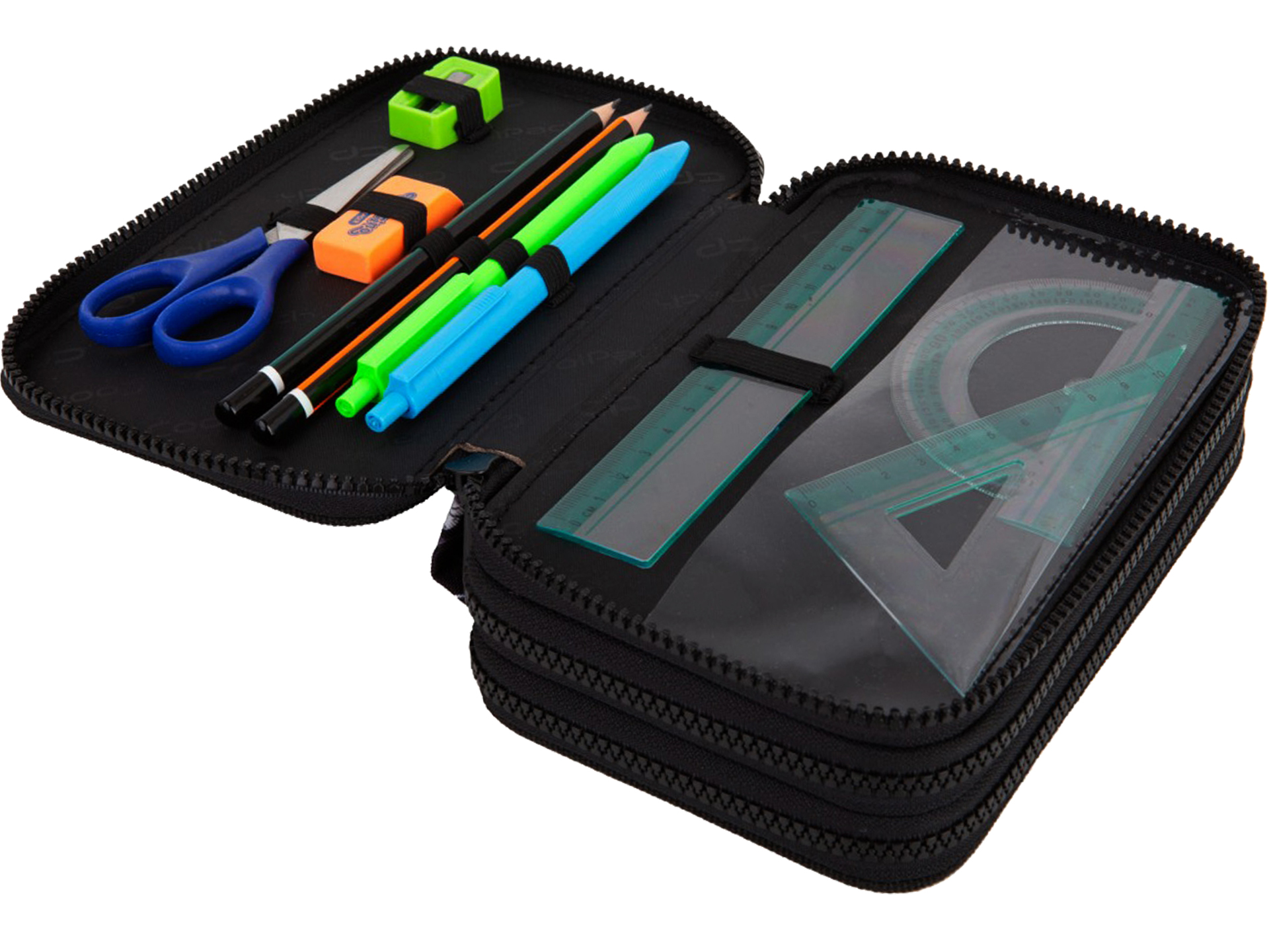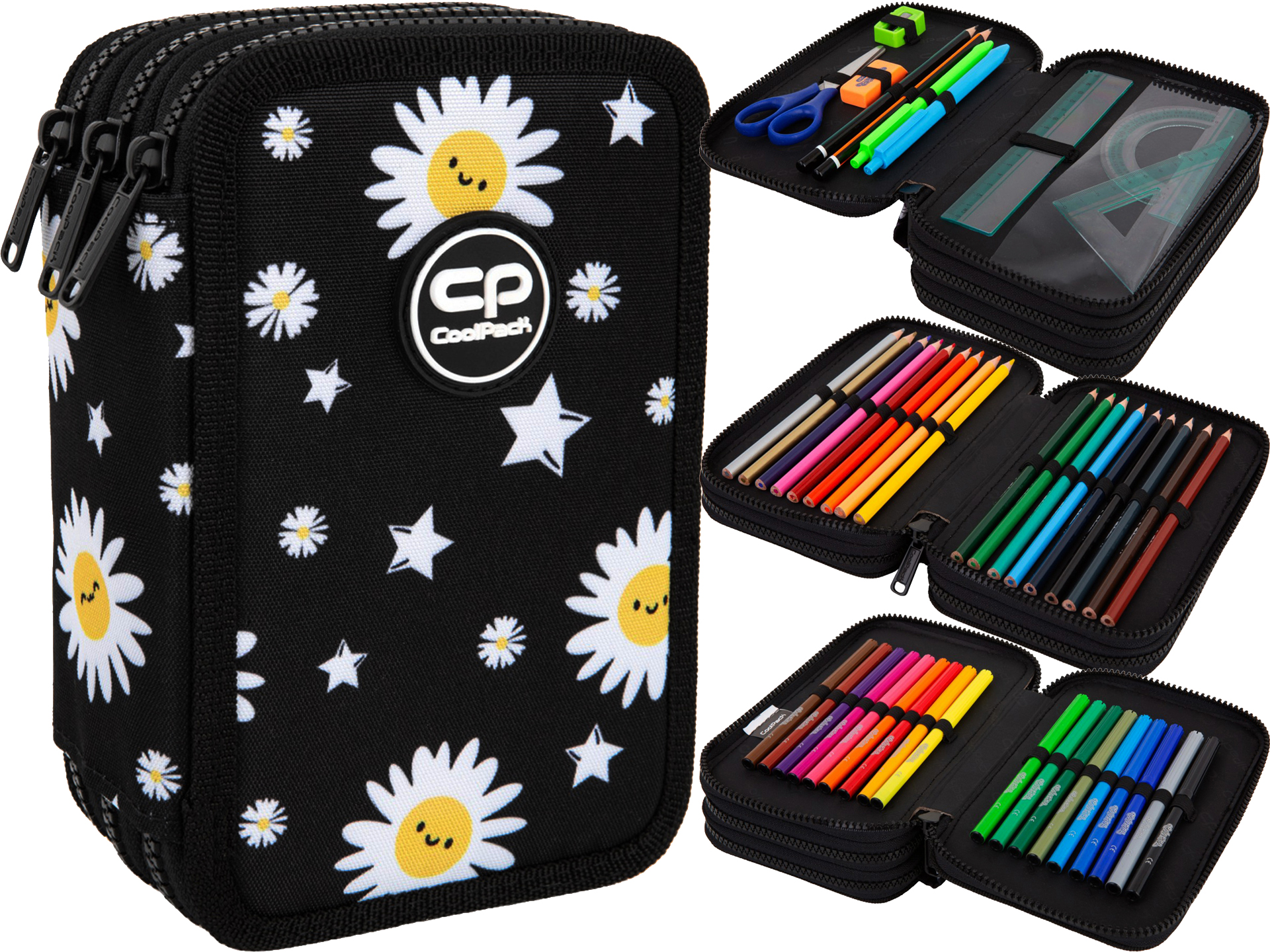 COOLPACK Potrójny Piórnik z Wyposażeniem JUMPER 3 Daisy Black TRZYKOMOROWY