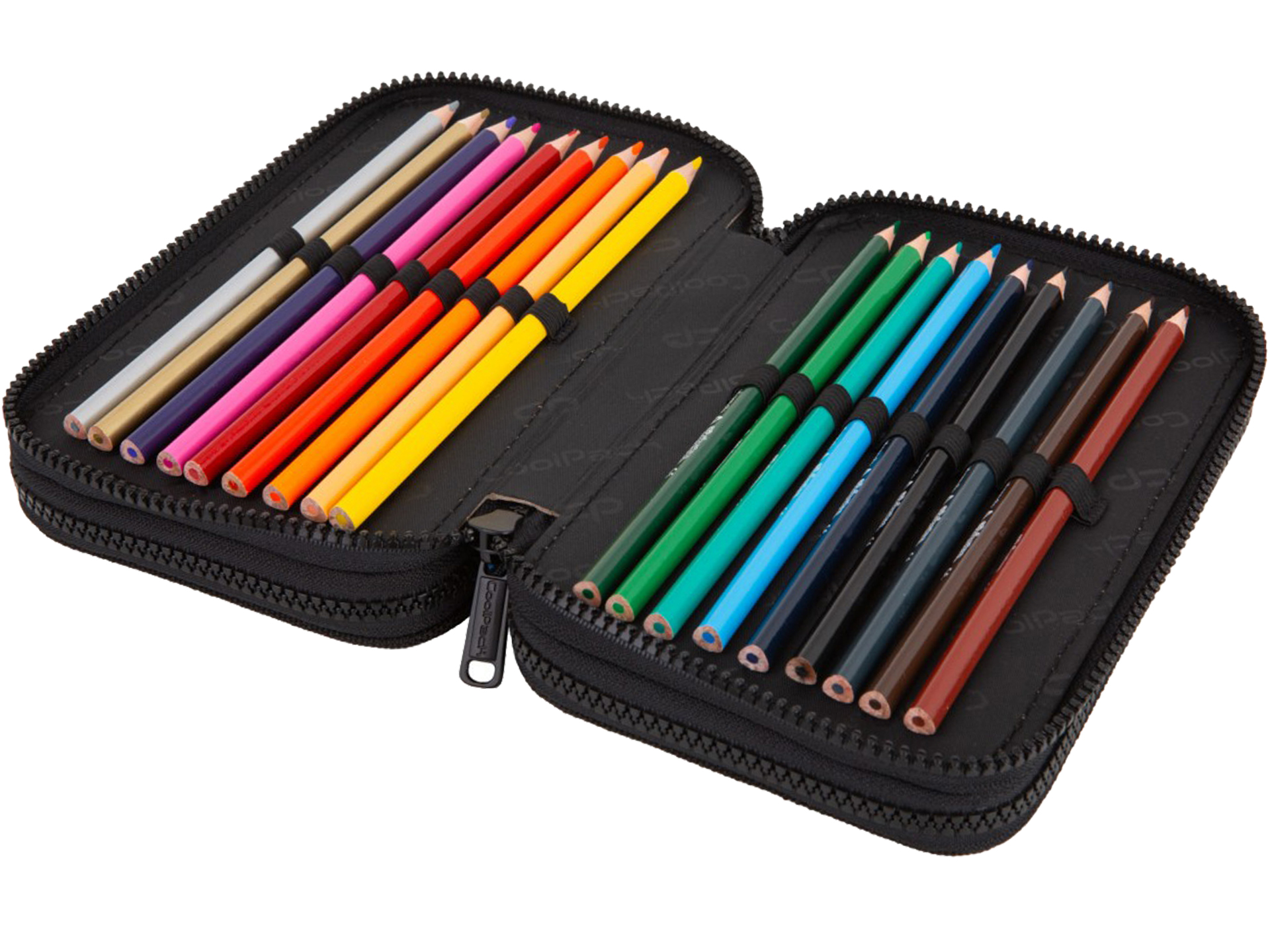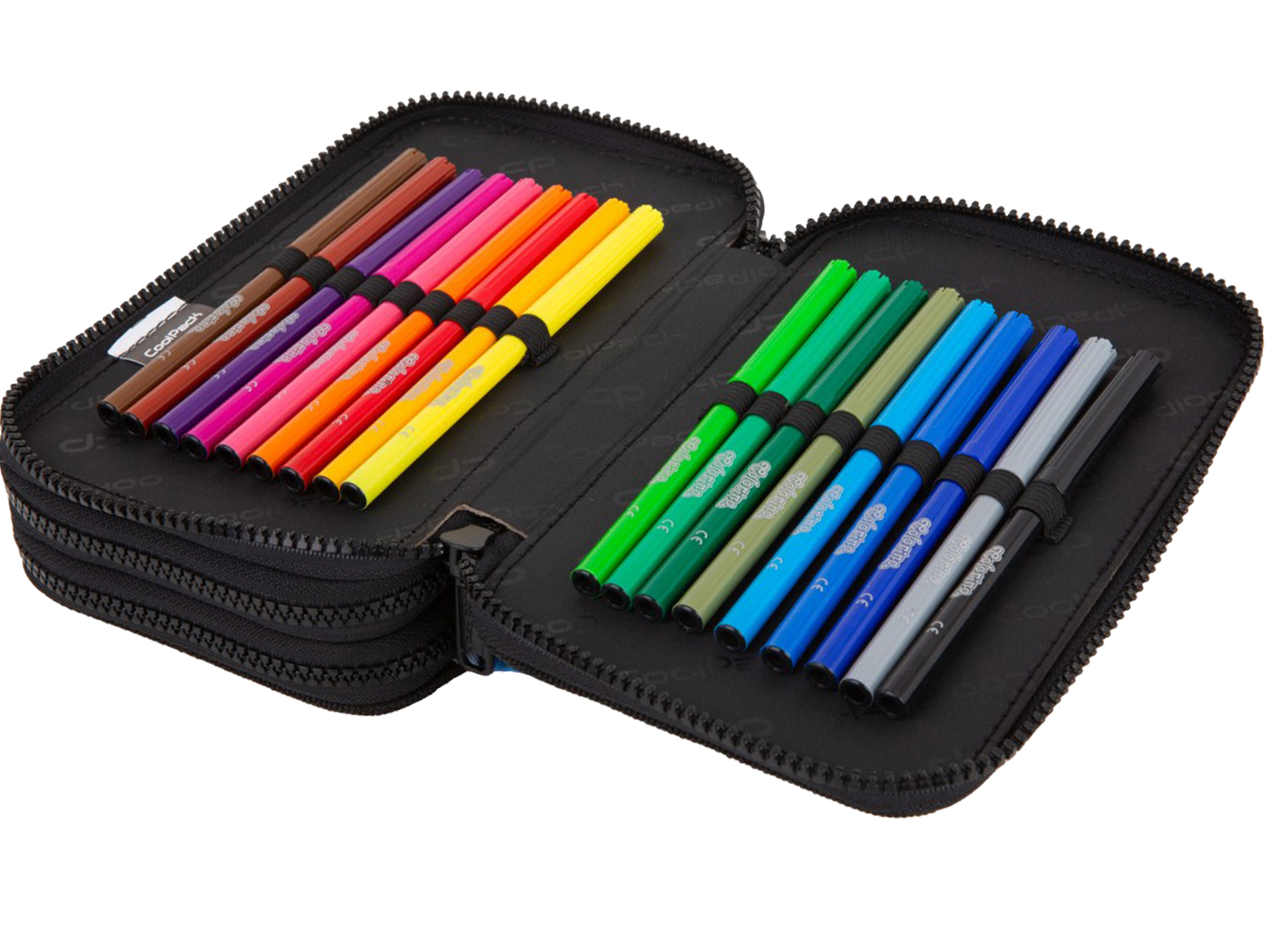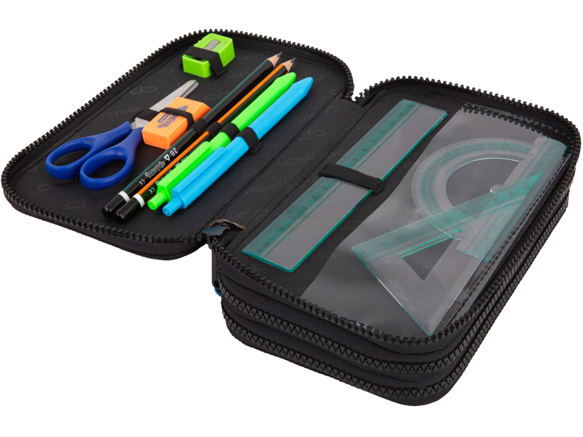 Potrójny piórnik z wyposażeniem wykonany jest z trwałych