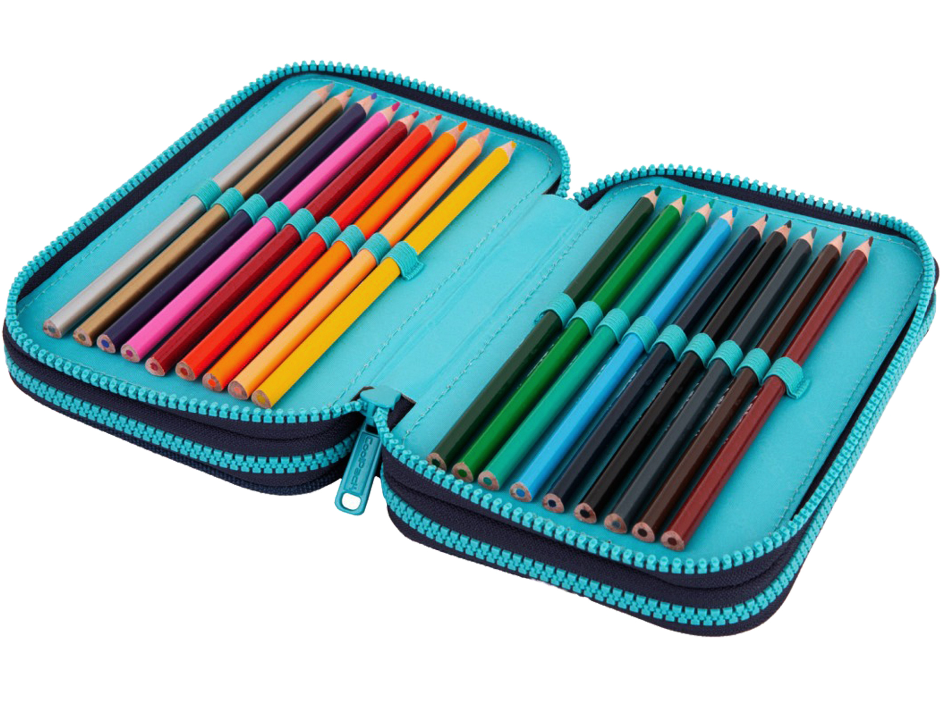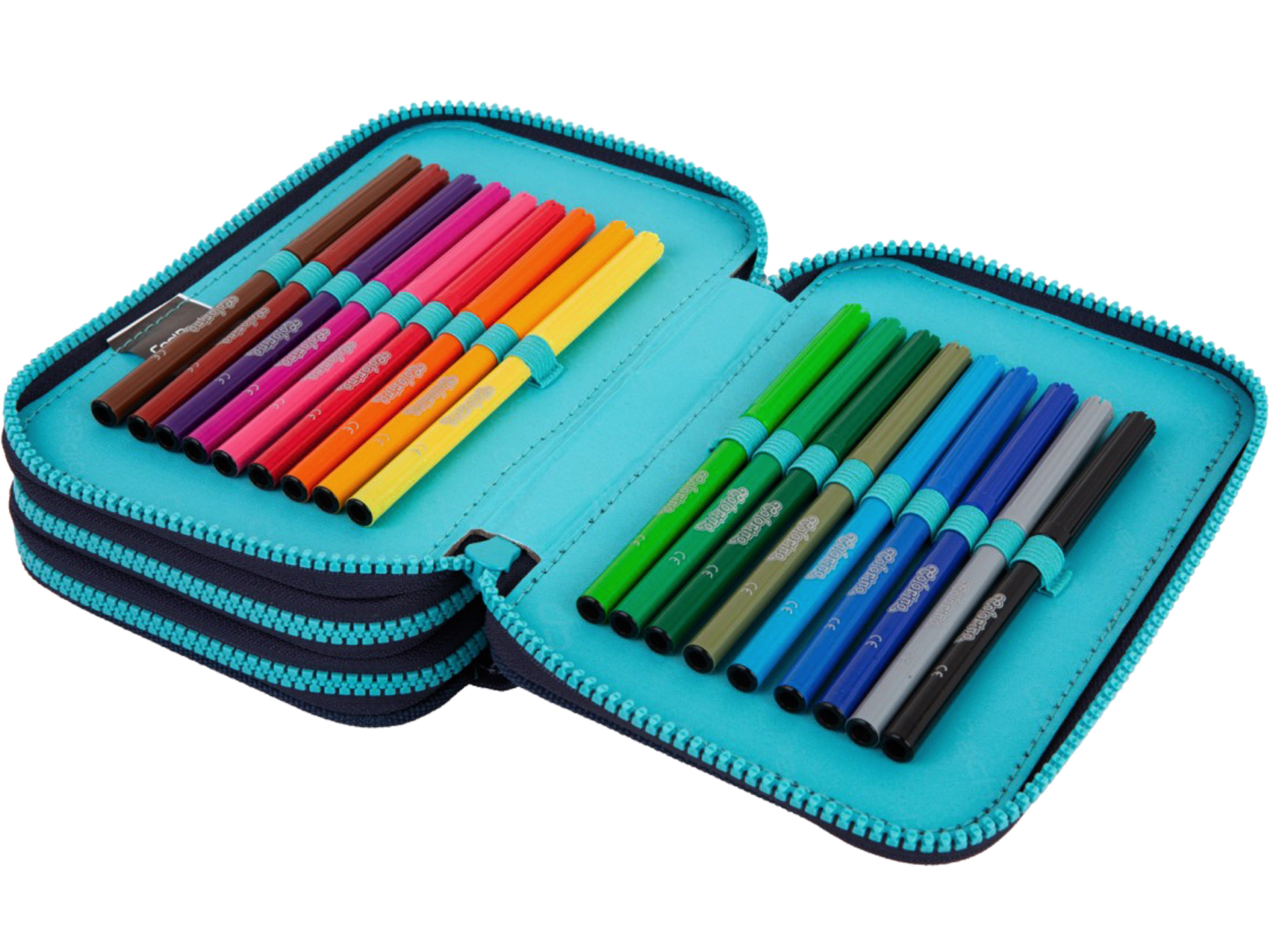 Potrójny piórnik z wyposażeniem wykonany jest z trwałych