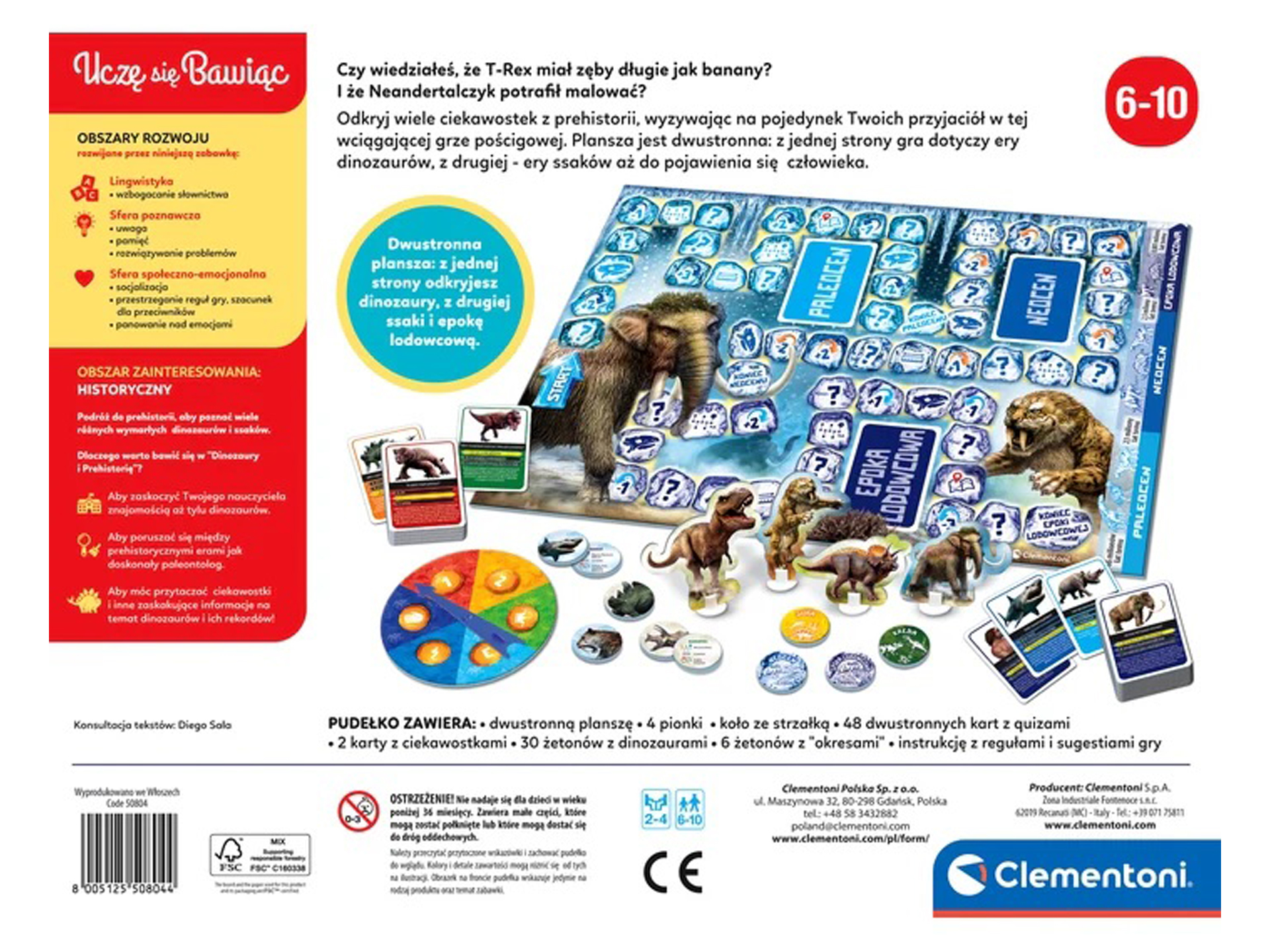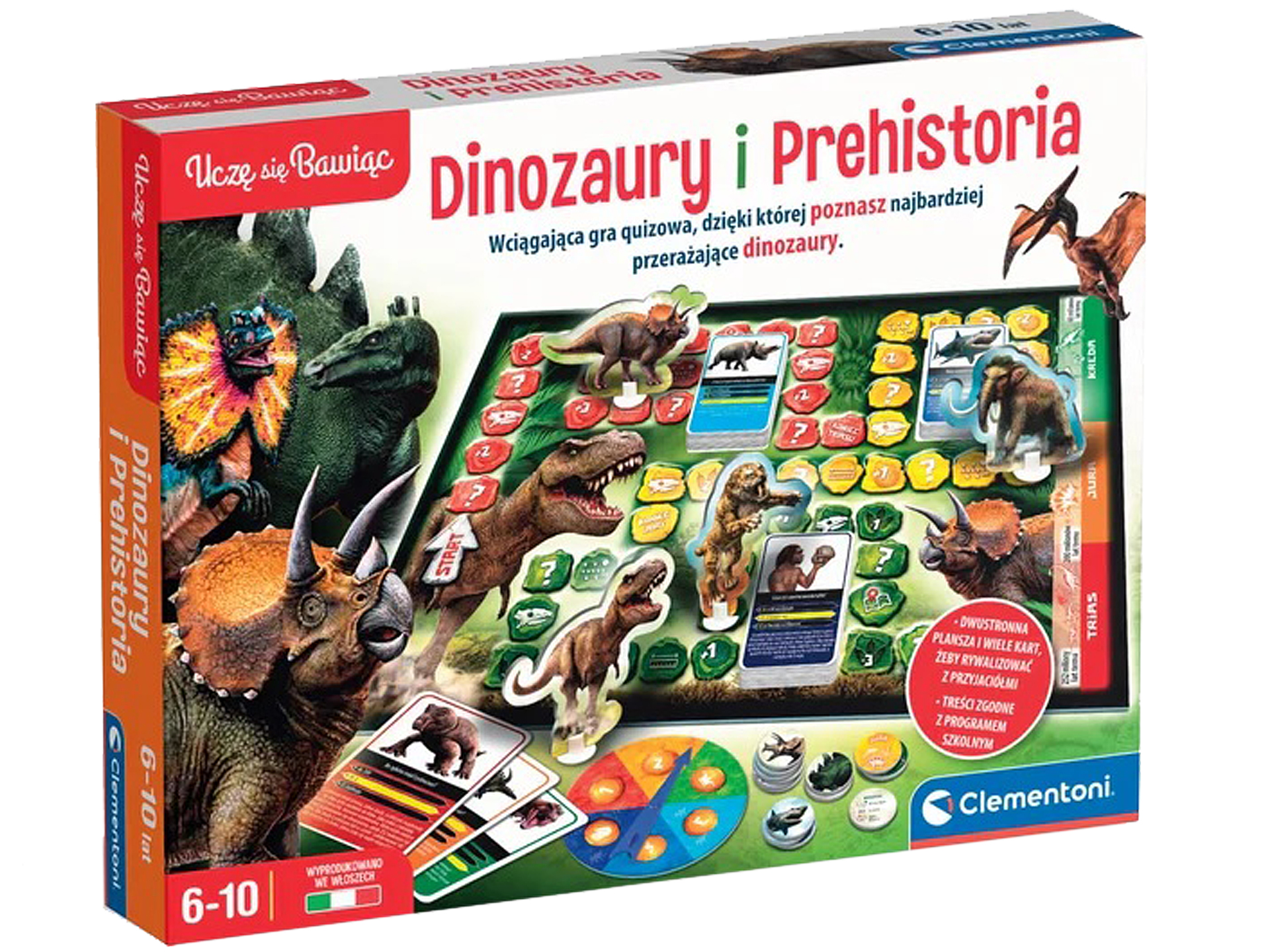 Clementoni DINOZAURY I PREHISTORIA 2w1 Gra Planszowa DWUSTRONNA QUIZ 6-10
