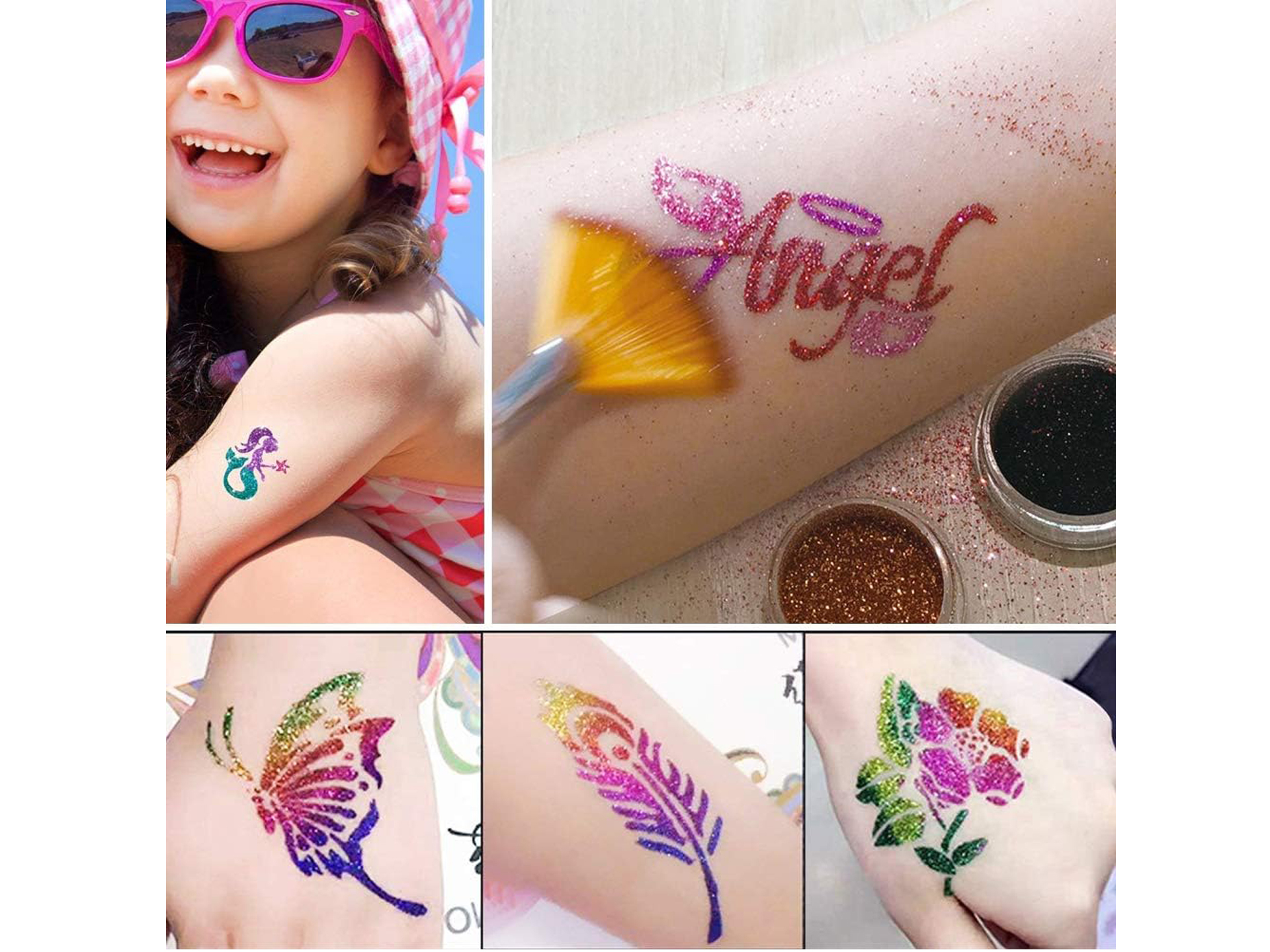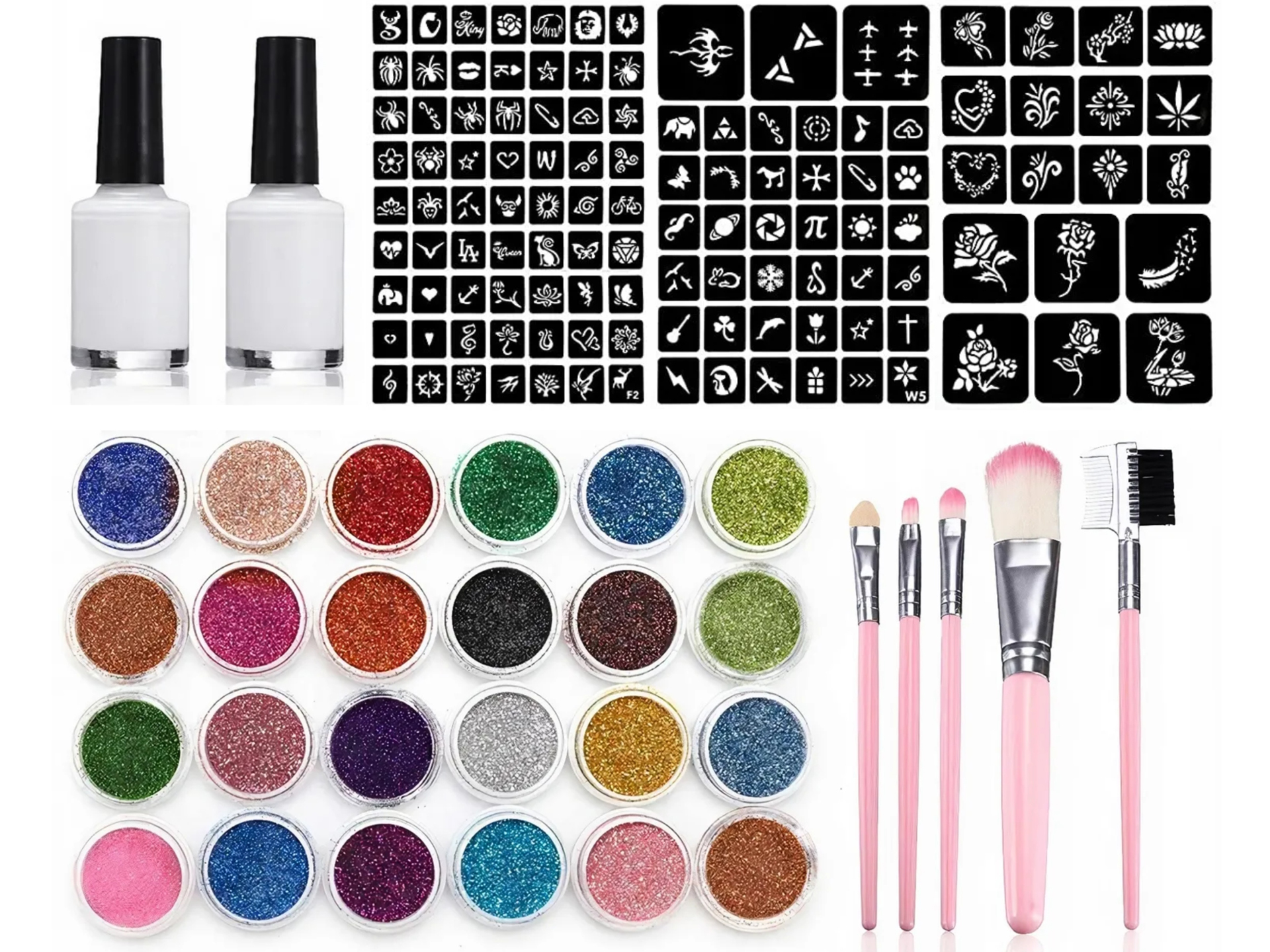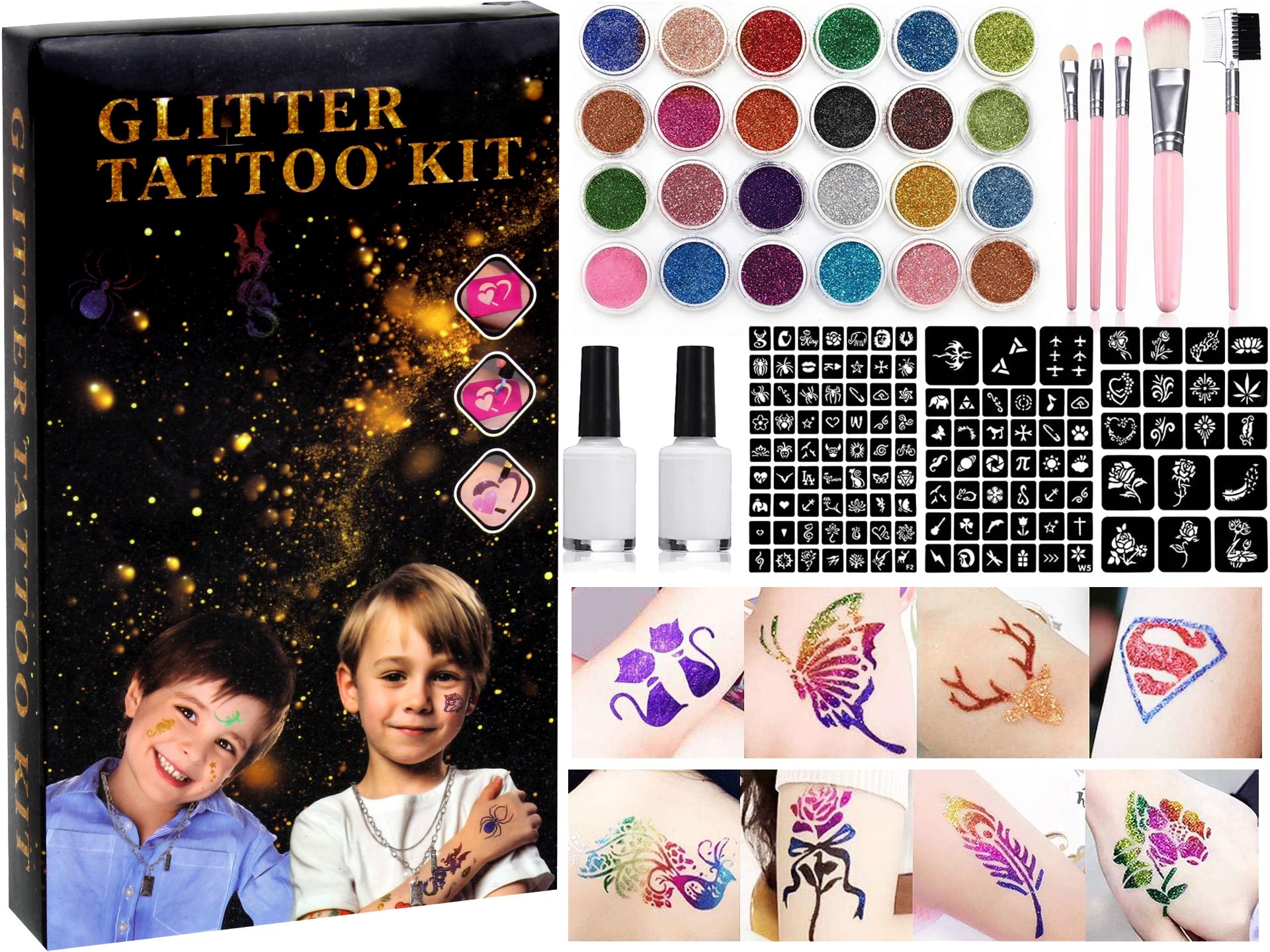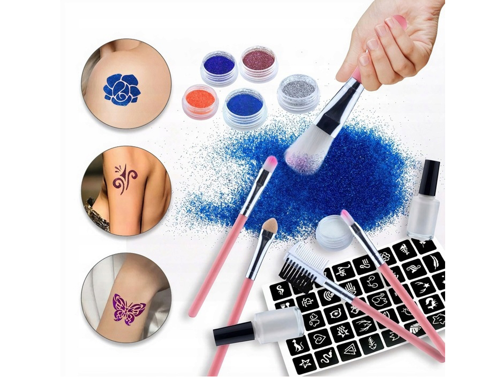 DUŻY Zestaw do Robienia TATUAŻY Z BROKATEM Szablony BROKATOWE TATUAŻE Naklejki