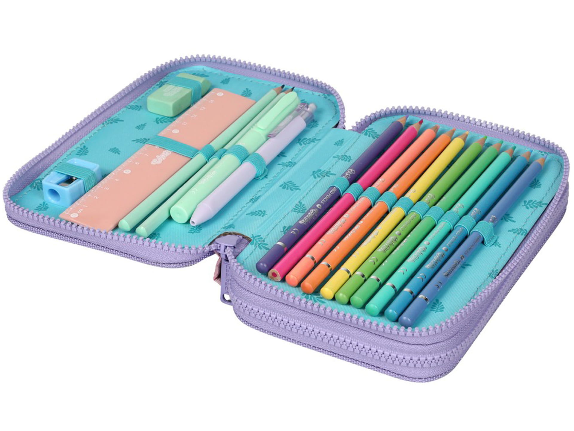 Podwójny piórnik z wyposażeniem wykonany jest z trwałych