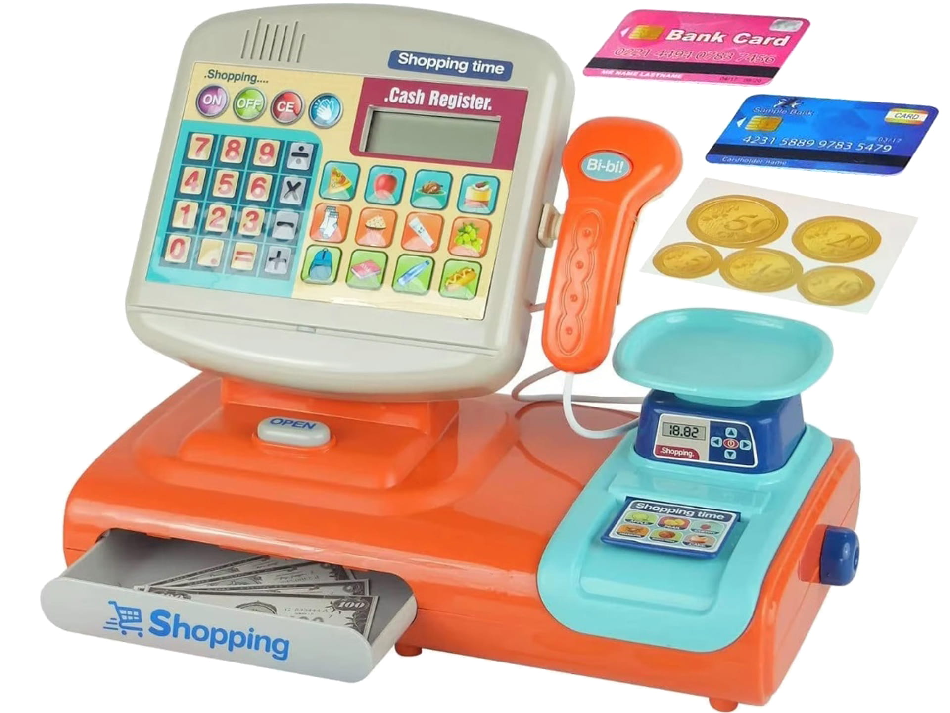 EDUKACYJNA KASA FISKALNA Sklepowa Kalkulator Waga Skaner Koszyk DŹWIĘK