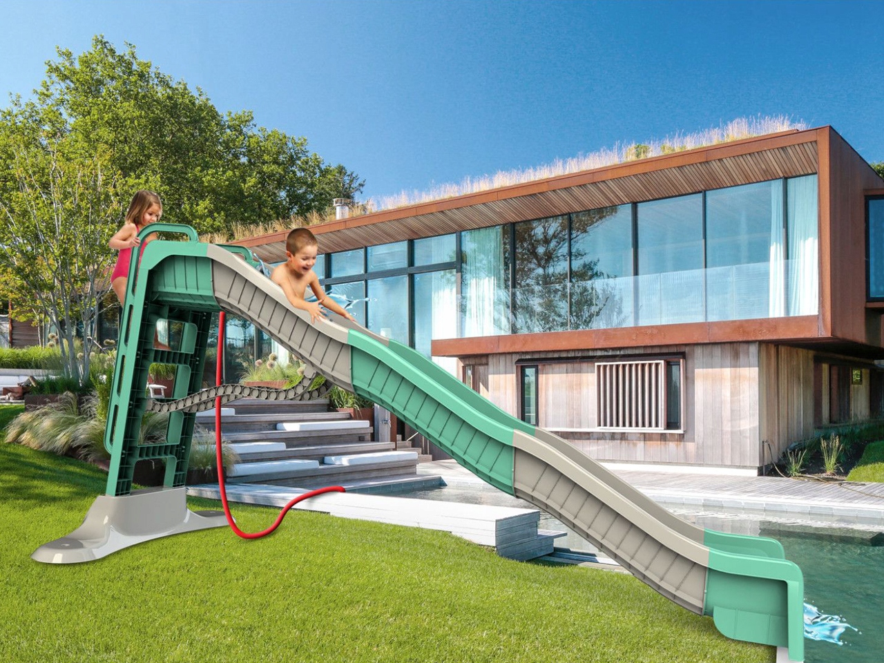 Gigantyczna Zjeżdżalnia ogrodowa z natryskiem
