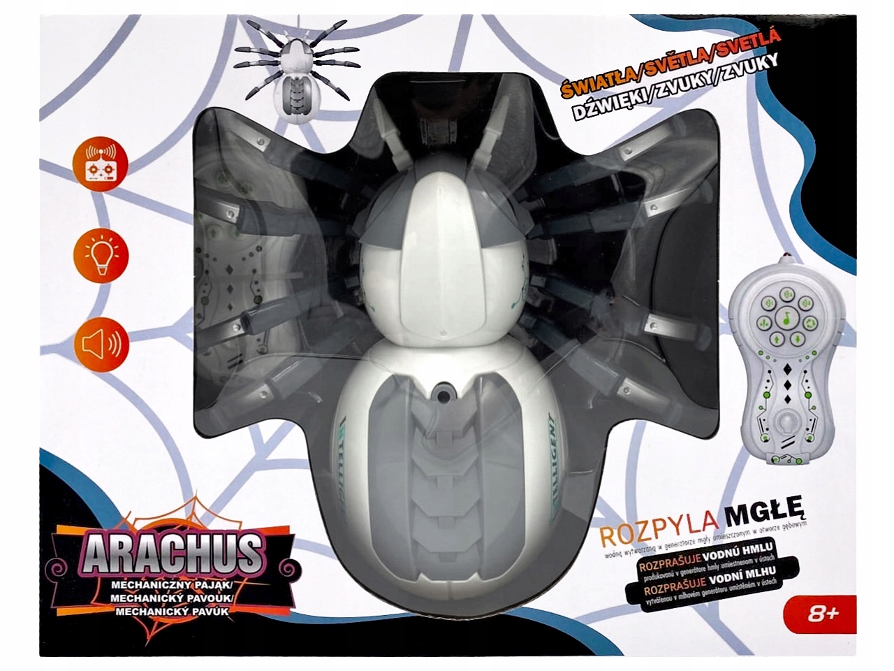 GROMNY PAJĄK ZDALNIE STEROWANY ROZPYLA MGŁĘ LED PILOT R/C ŚWIATŁO DŹWIĘK