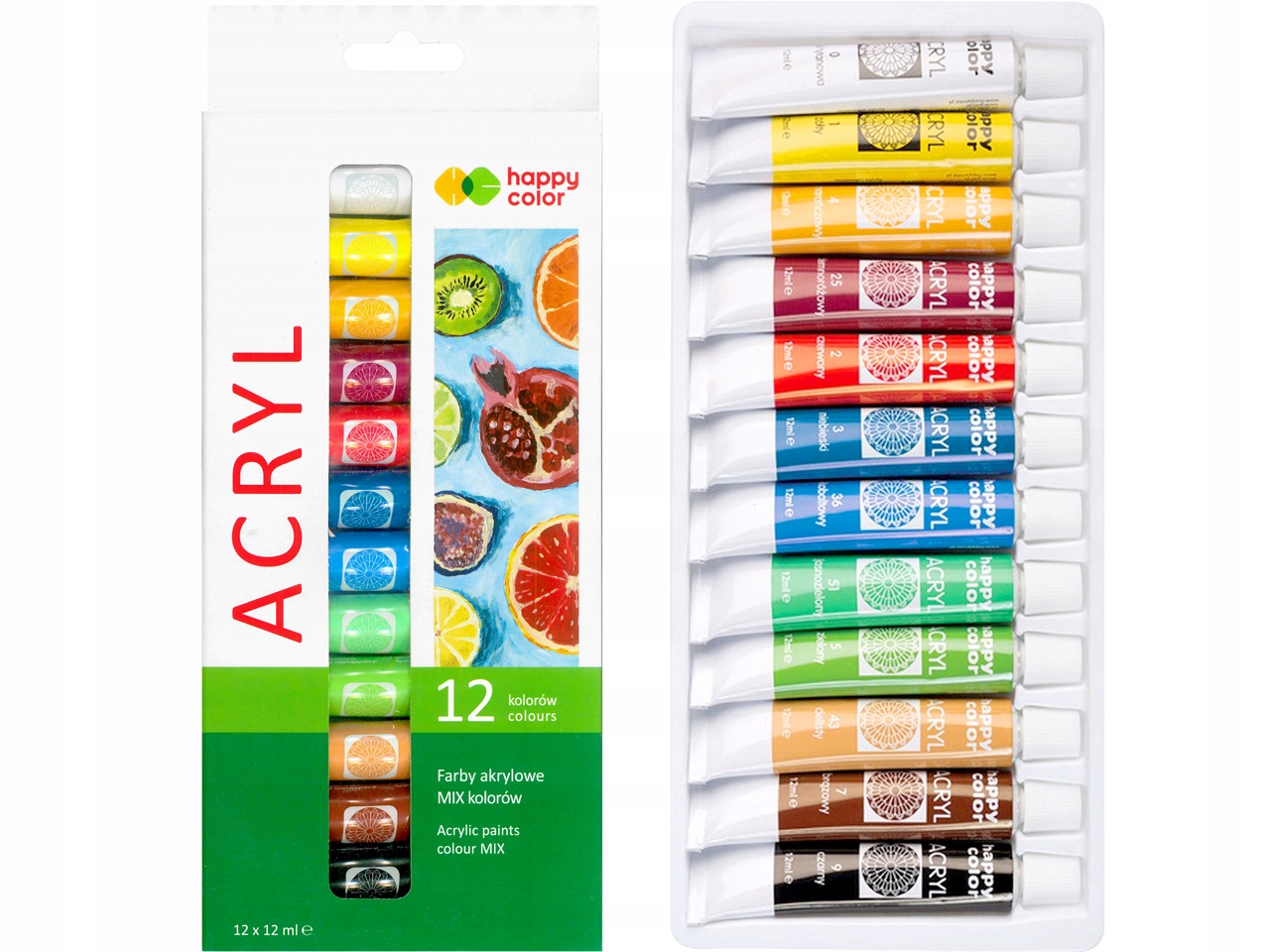 4. Farbki Akrylowe w tubce 12ml - 12 kolorów
