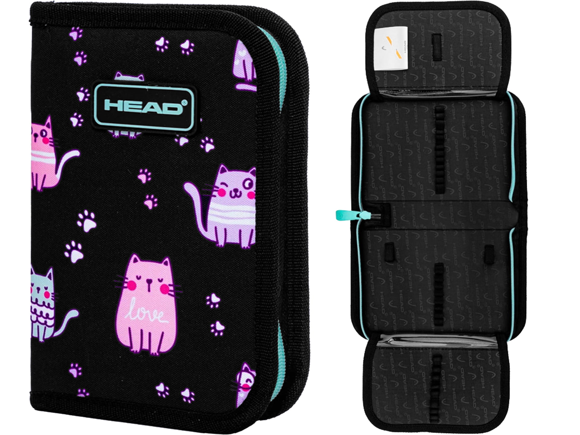 HEAD PIÓRNIK Dwuklapkowy jednokomorowy Szkolny KOEK Kotki CZARNY KOT Puszin