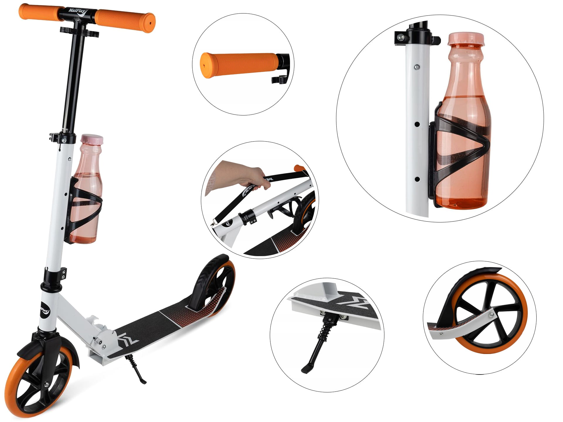 hulajnogę oraz składaną stopkę pozwalającą wygodnie podeprzeć hulajnogę,