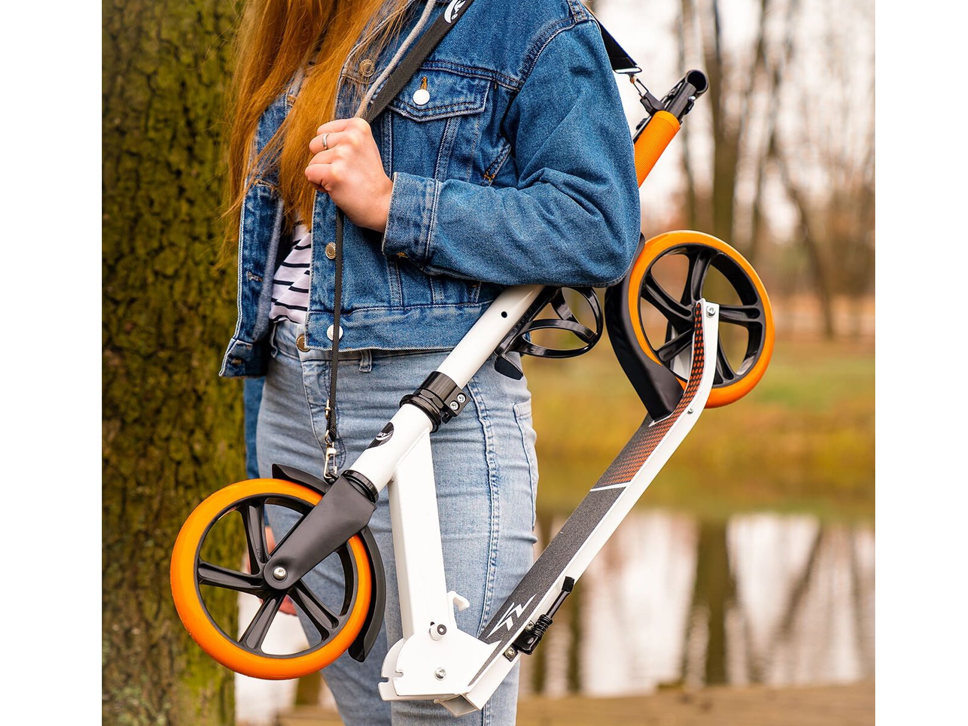 bez potrzeby opierania jej o ścianę. Dodatkowo hulajnoga posiada regulację