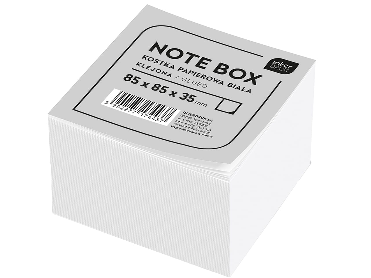 INTERDRUK KOSTKA Papierowa biała 85x85x35 KLEJONA