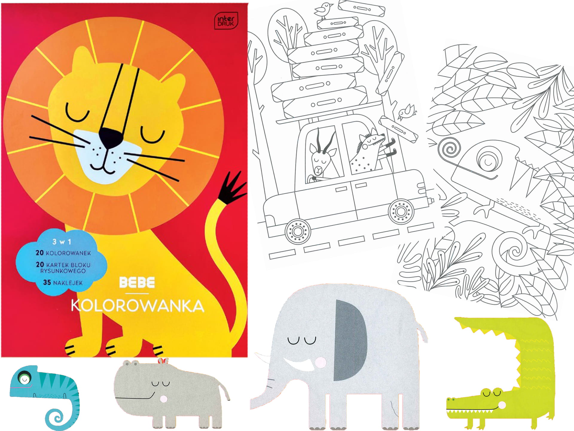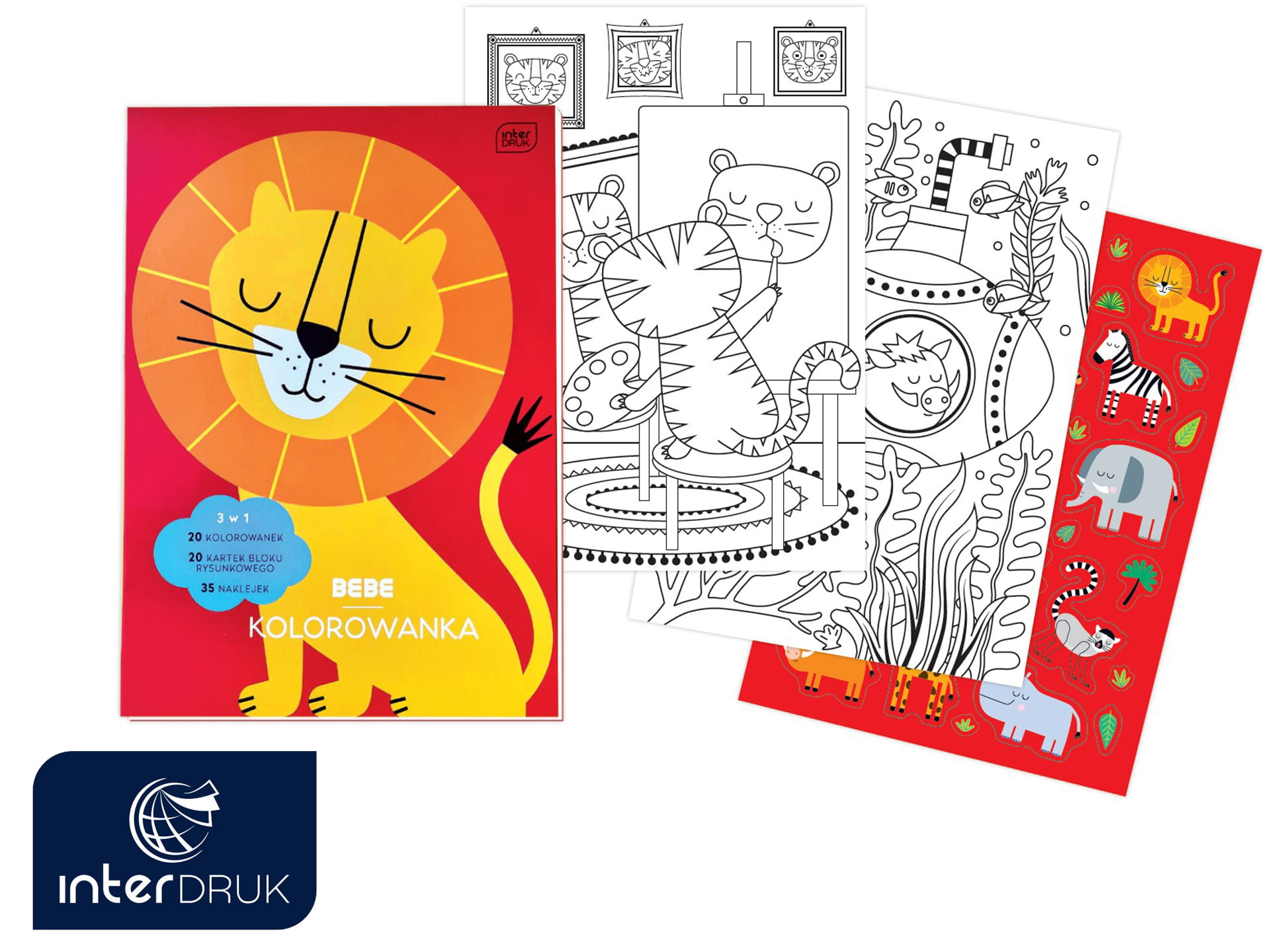INTERDRUK Kolorowanka 3w1 BB Kids A4 BLOK Kolorowanek 40 kartek + NAKLEJKI