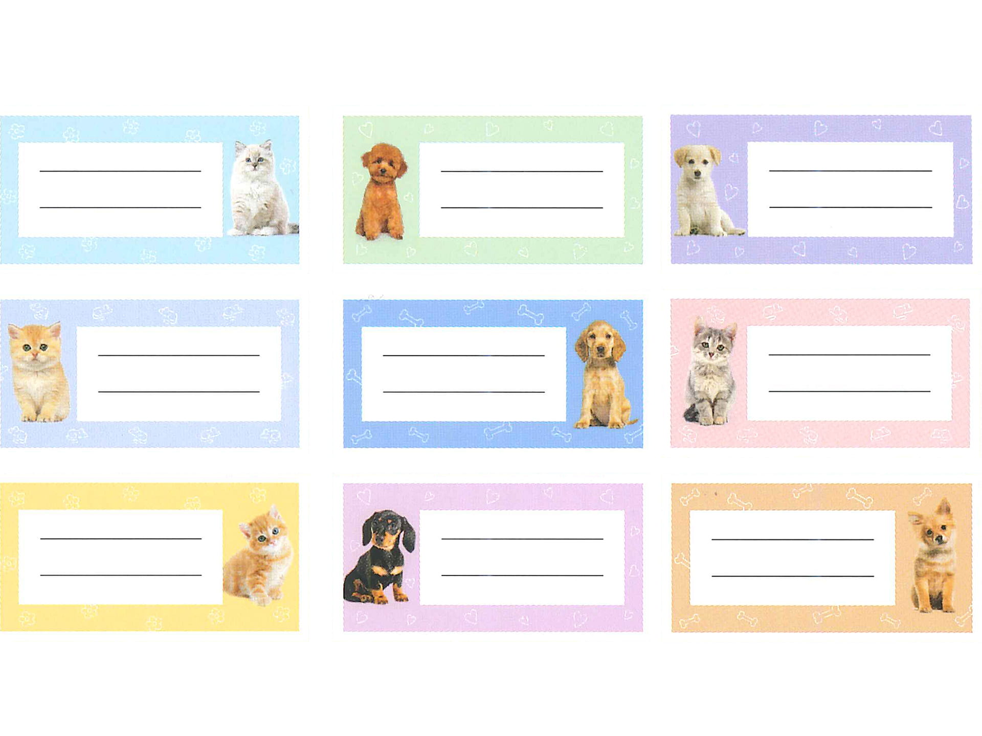 Zestaw 9 naklejek na zeszyt nadrukiem piesków i kotków,
