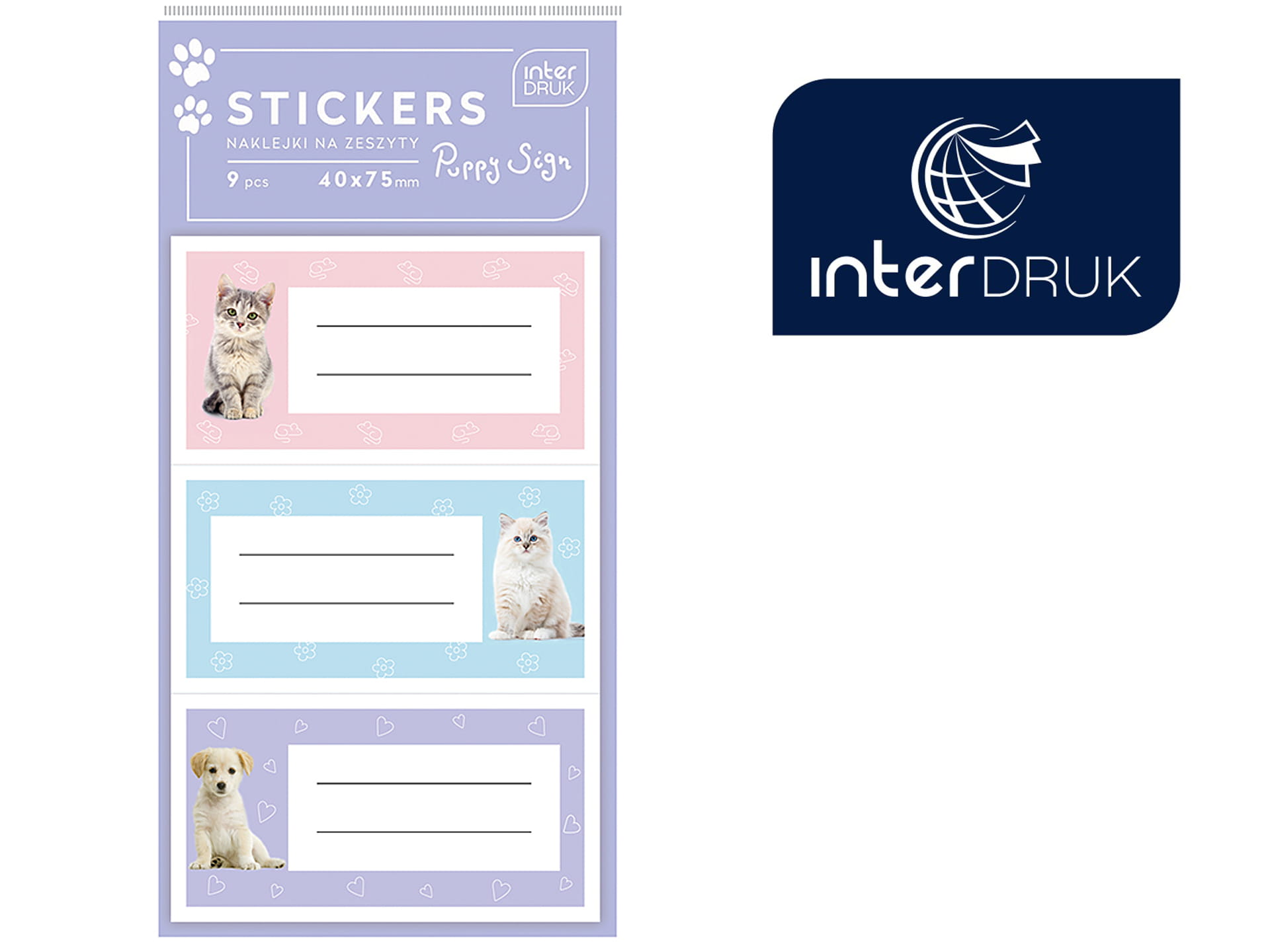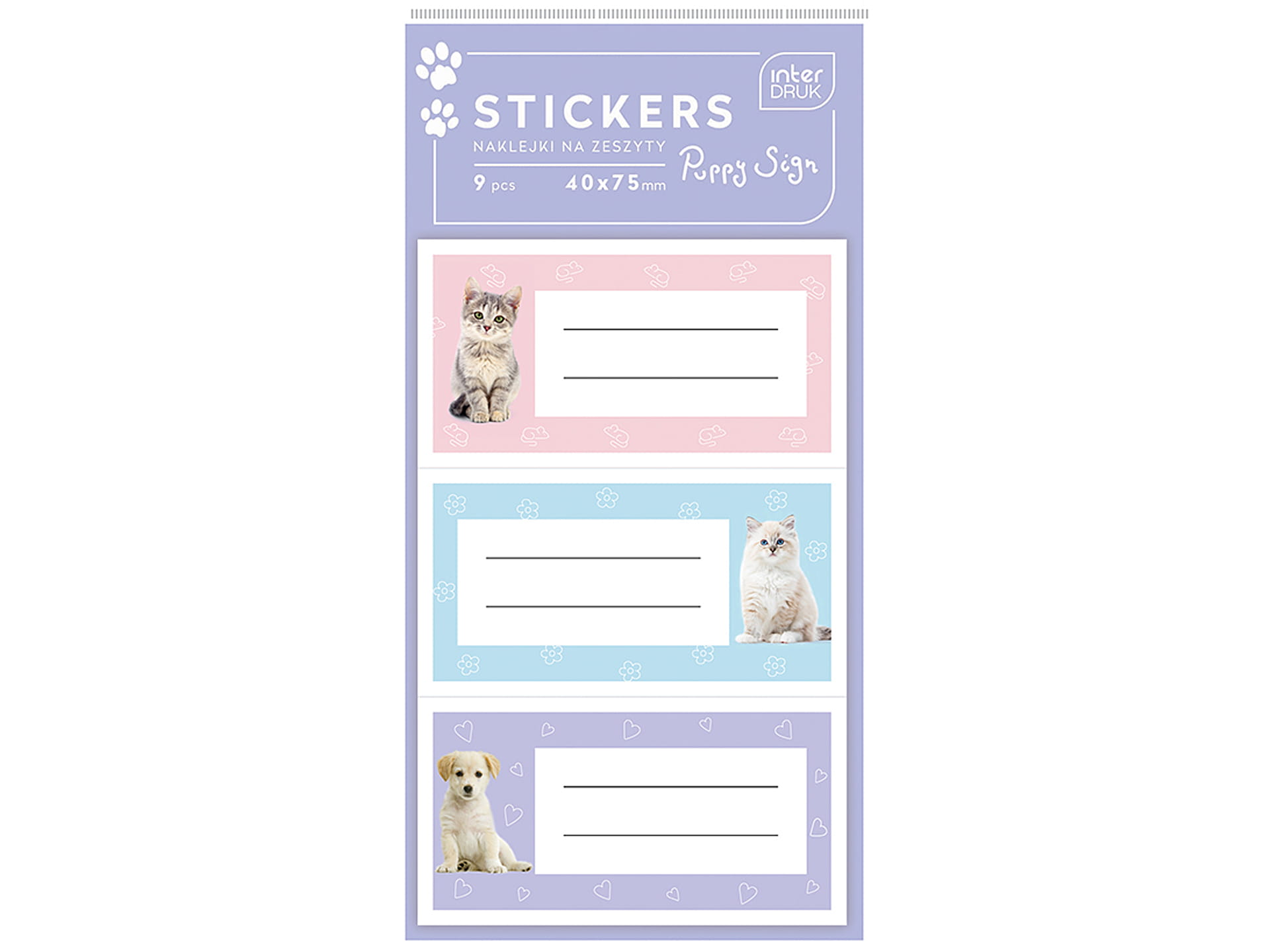 INTERDRUK Naklejki na ZESZYT KSIĄŻKI 9 sztuk PUPPY Sign 40 x75 mm KOT Pies