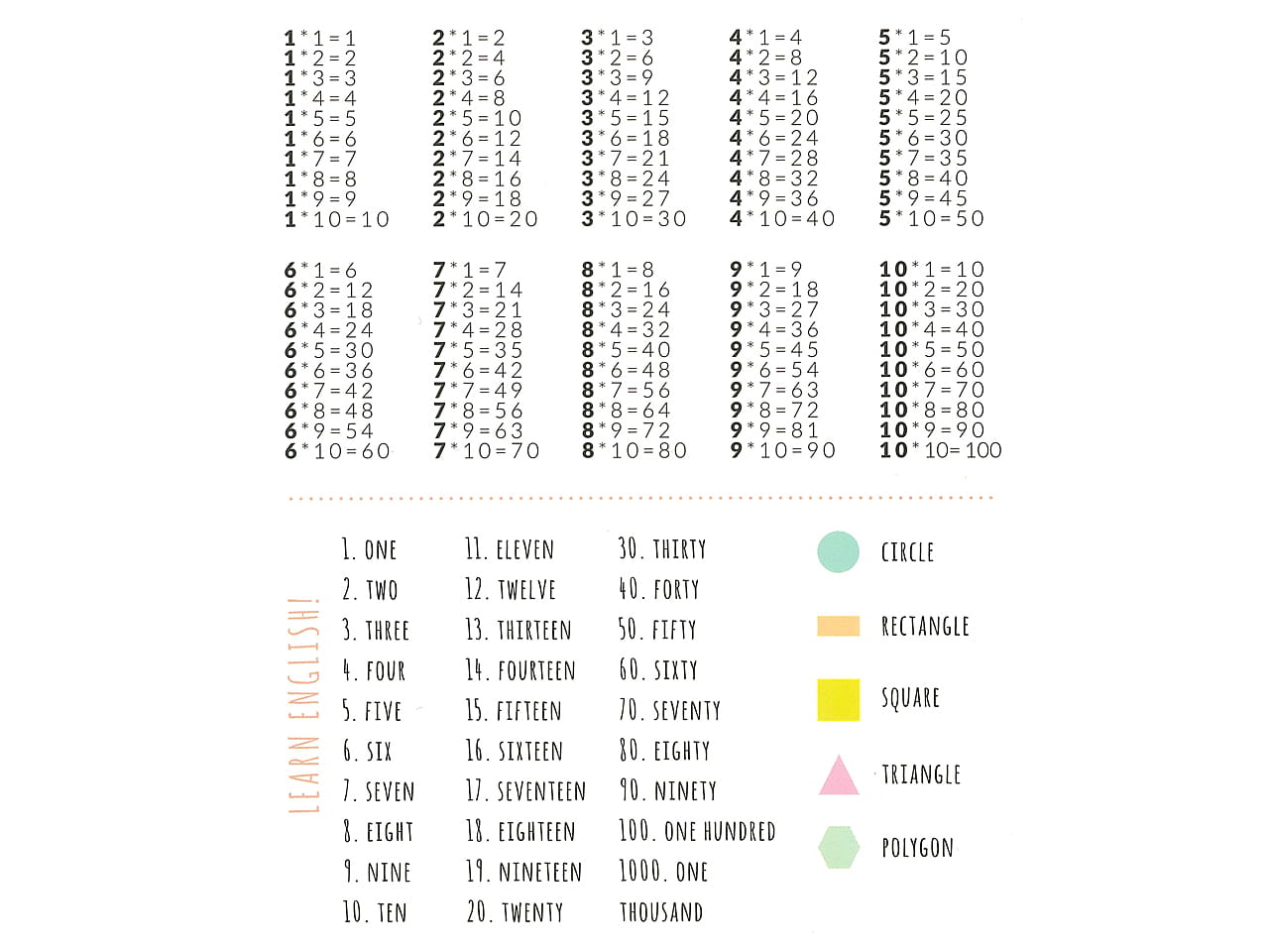 dzieci tabliczka mnożenia i angielskie słówka.