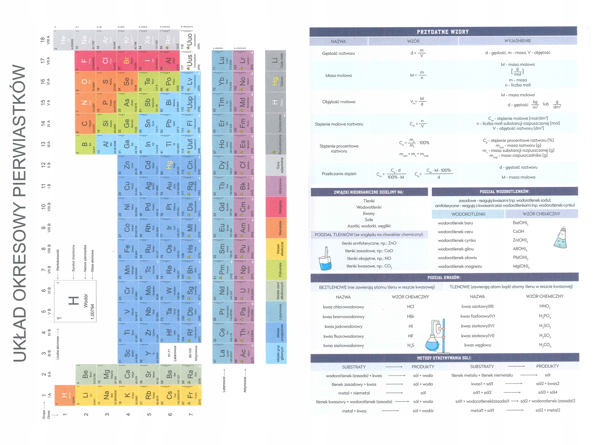 Na wewnętrznych okładkach zeszytu znajduje się ściąga z chemii (np. układ okresowy pierwiastków).