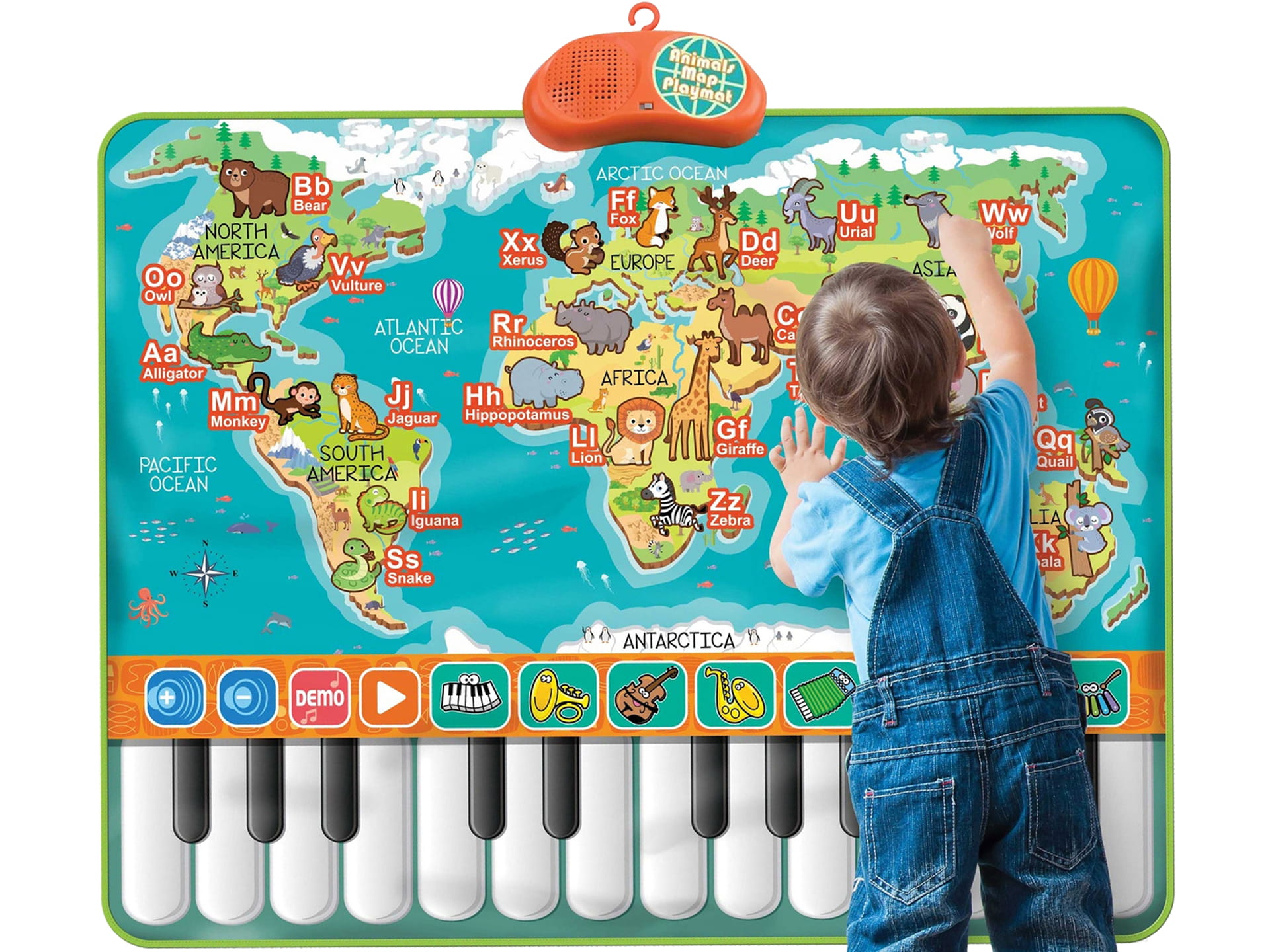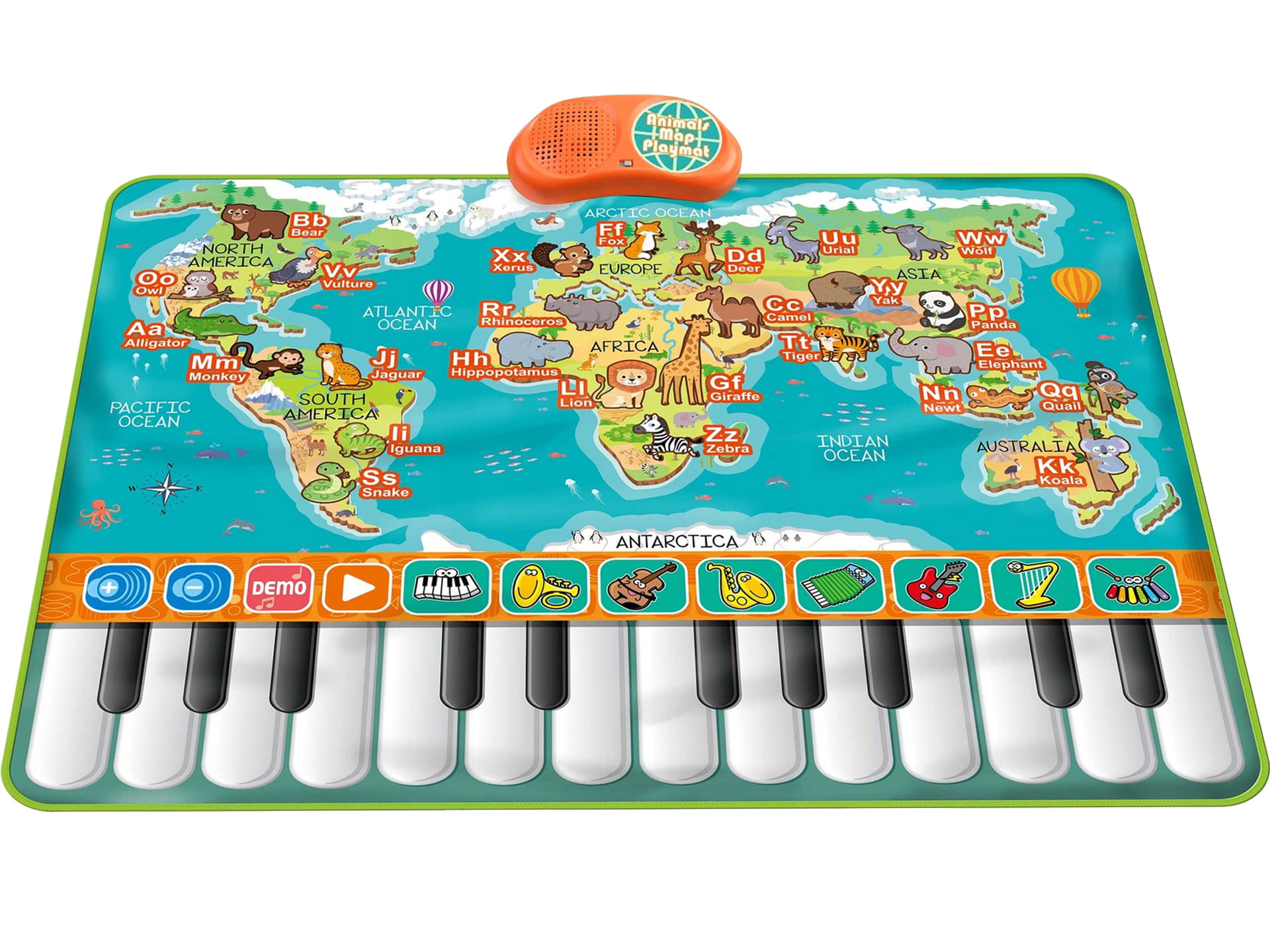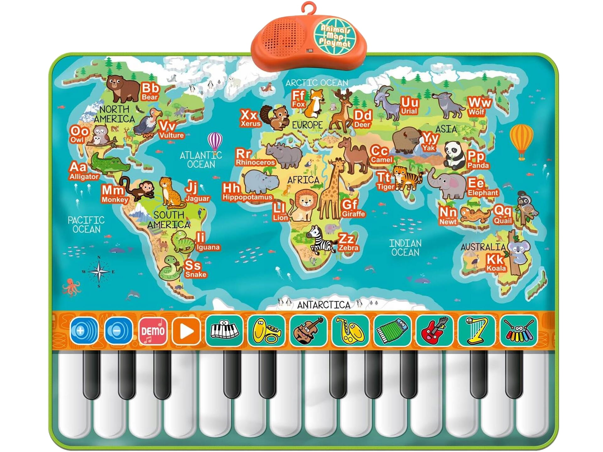 Interaktywna MATA MAPA ŚWIATA PIANINKO ZWIERZĄTKA Muzyczna DOTYKOWA 90CM