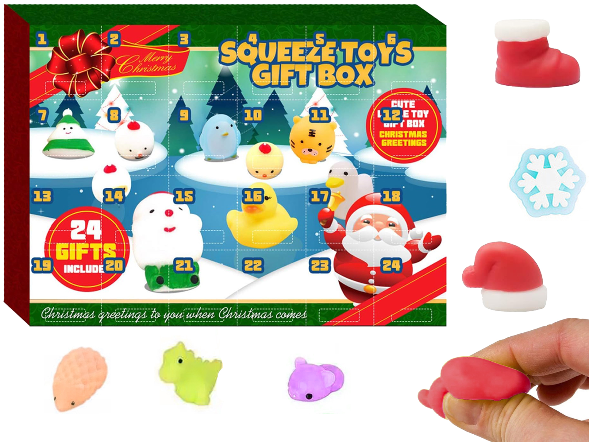 Narodzenia. Zestaw zawiera 24 miniaturowe gniotki squishies,