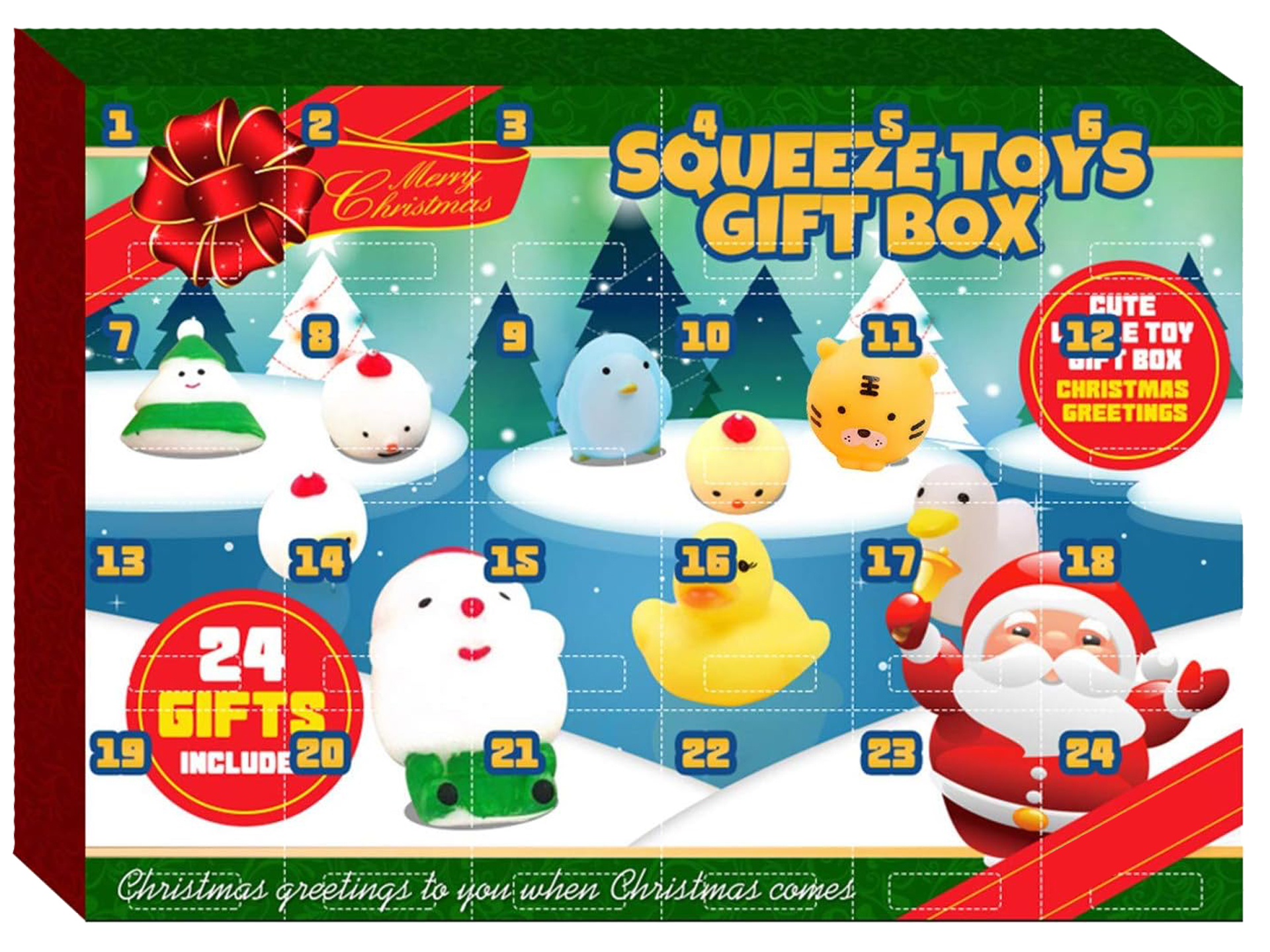 KALENDARZ Adwentowy MOCHI SQUISHIES 24 Okienka GNIOTKI Prezent na ŚWIĘTA