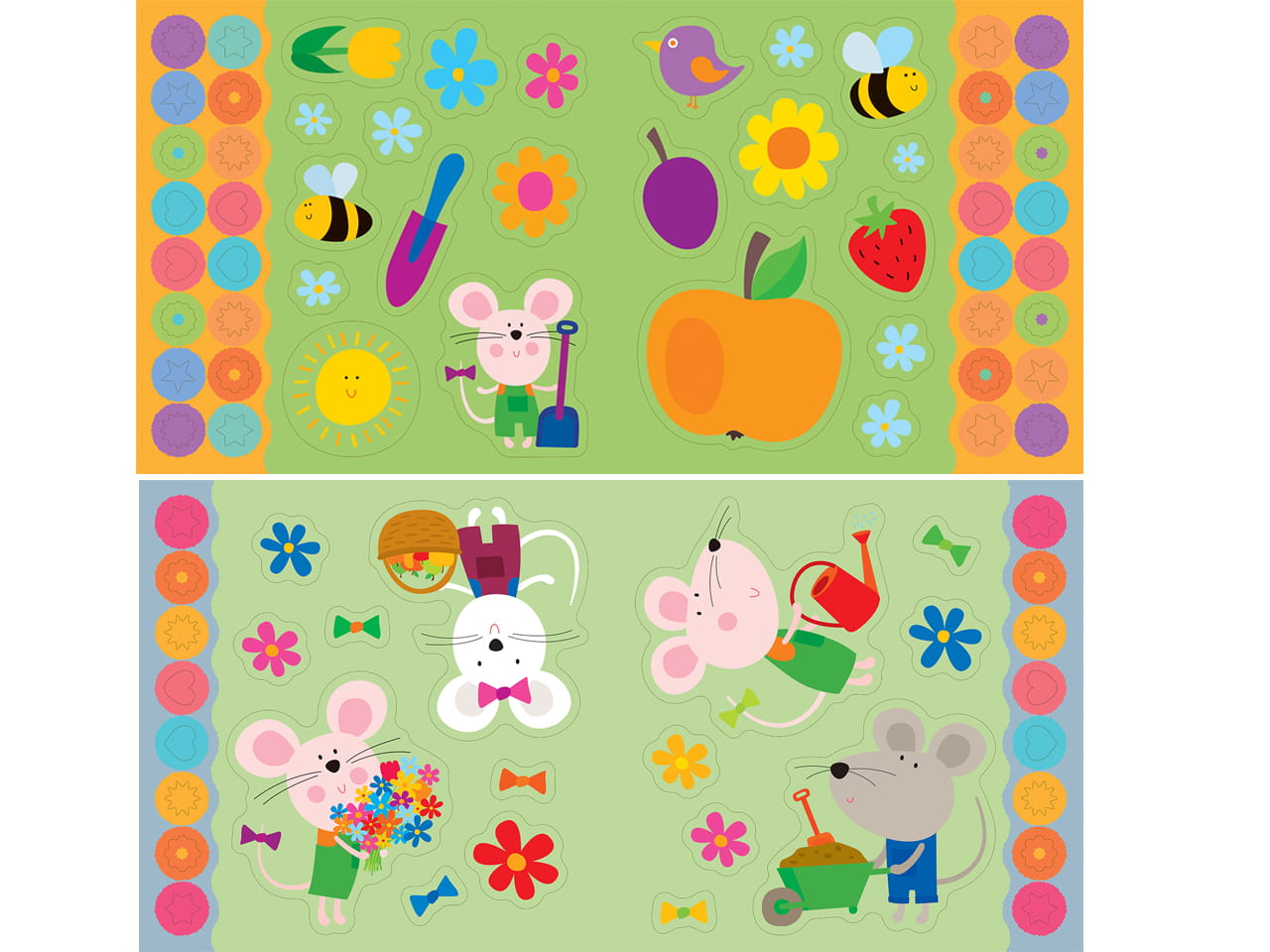 KOLOROWANKA z NAKLEJKAMI Myszunia KIKI w OGRODZIE