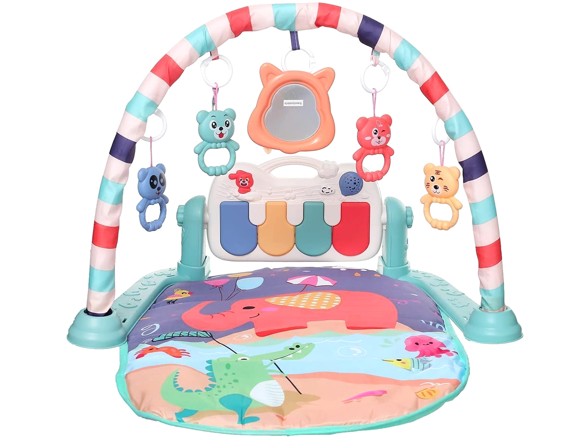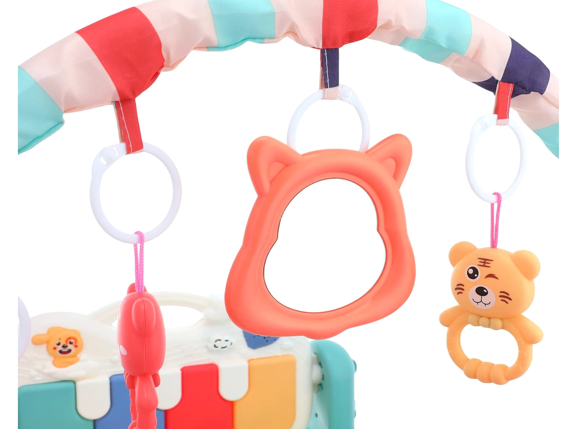 oraz pałąku z 4 plastikowymi zawieszkami i lusterkiem, które z pewnością