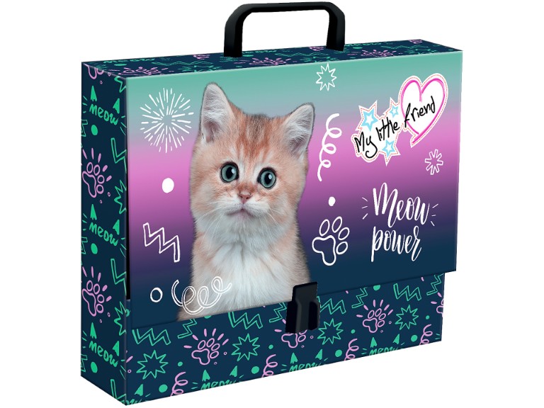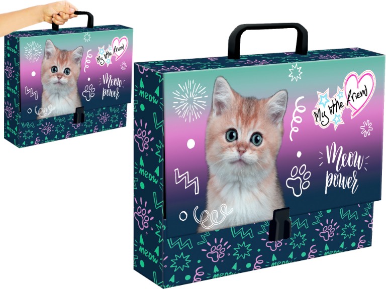 MY LITTLE FRIEND Teczka XL z RĄCZKĄ A4 Sztywna GRUBA 9 cm Kot KITTY PARTY