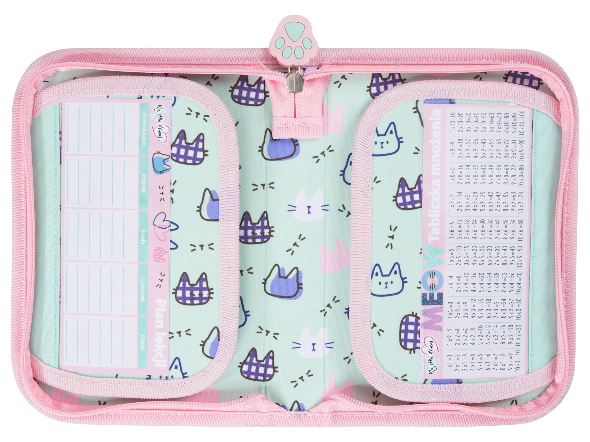 Do piórnika dołączono plan lekcji i tabliczkę mnożenia.
