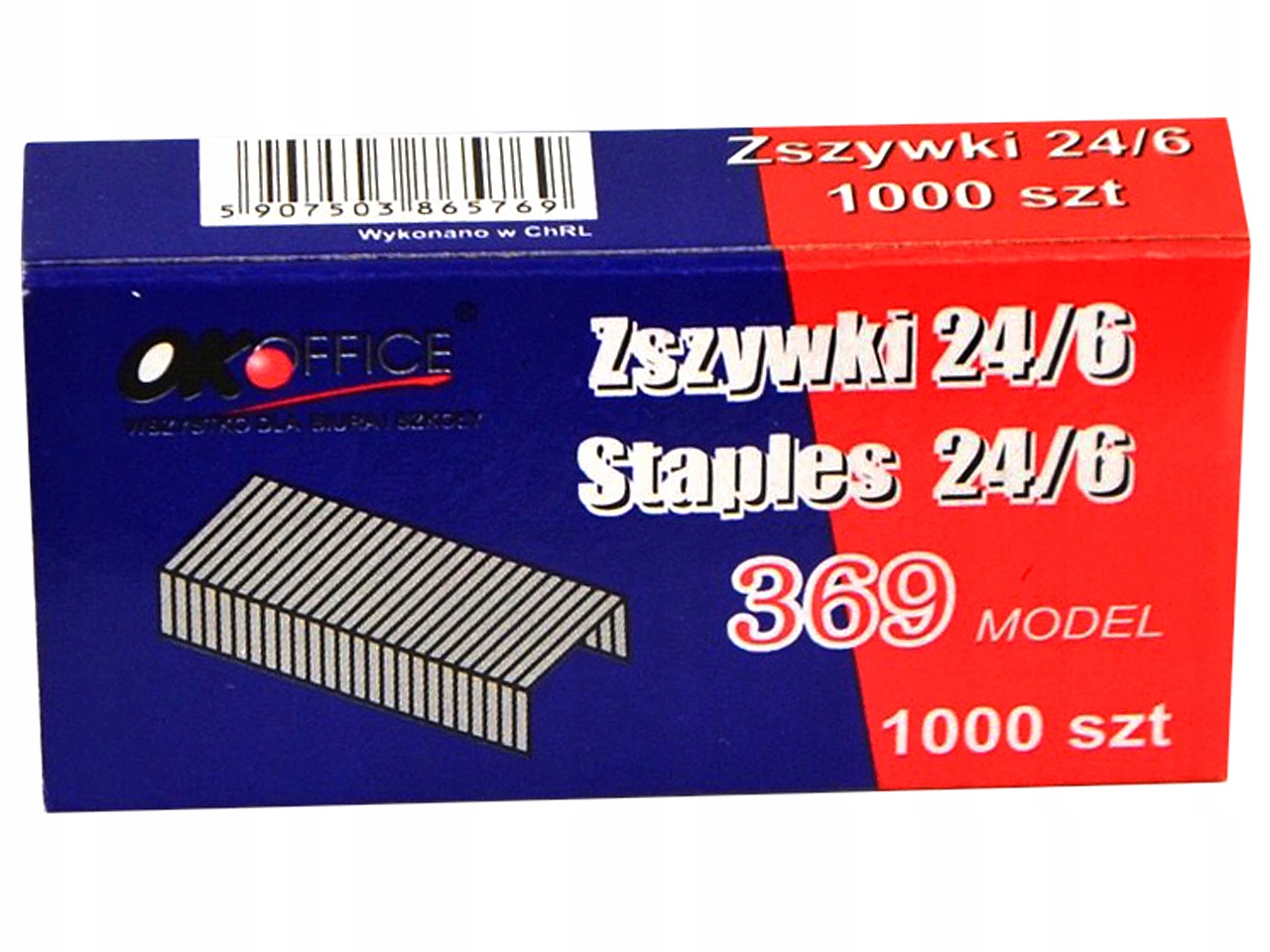 OKOFFICE Ocynkowane ZSZYWKI metalowe standardowe 24/6 1000 szt Model 369