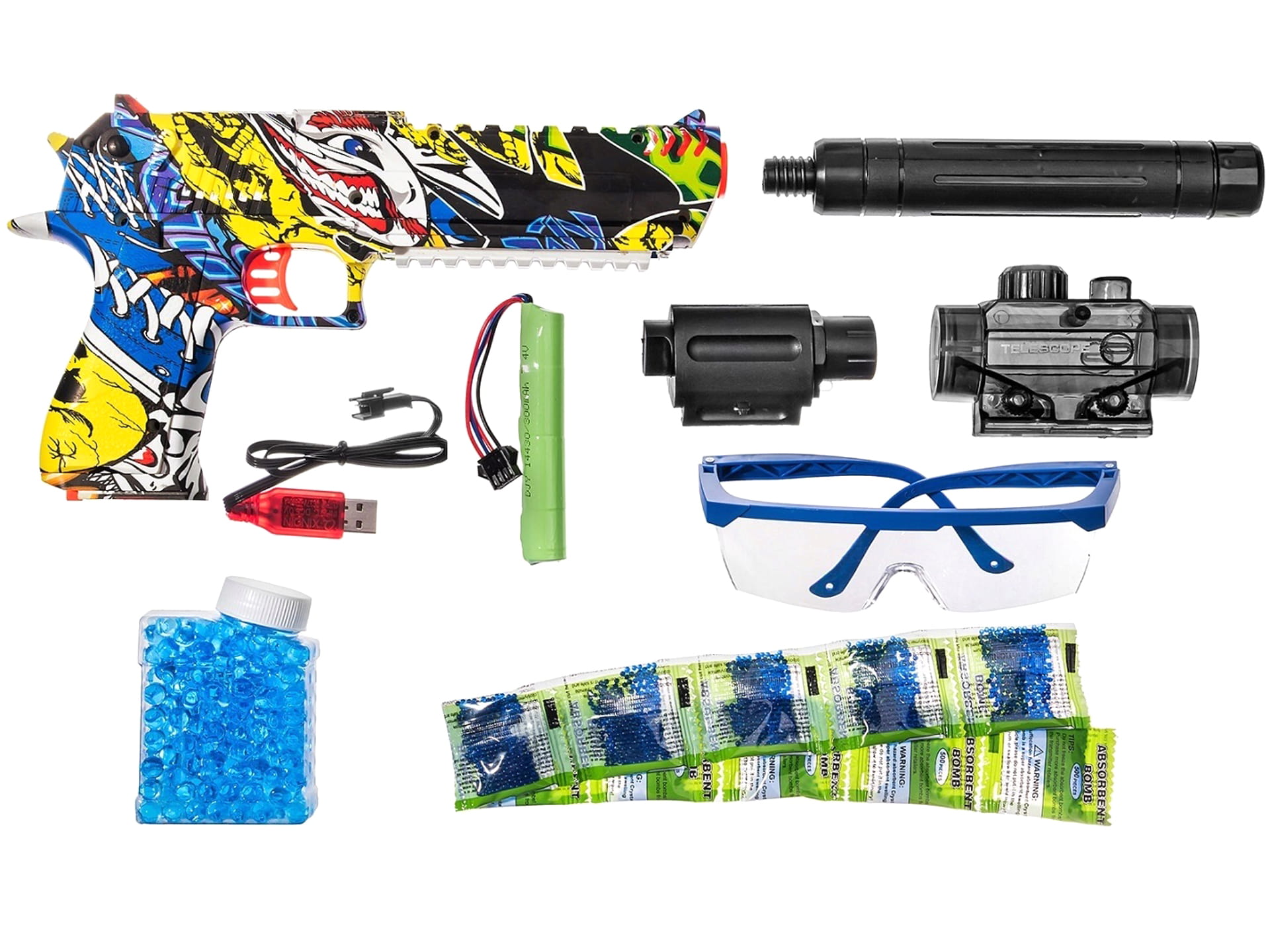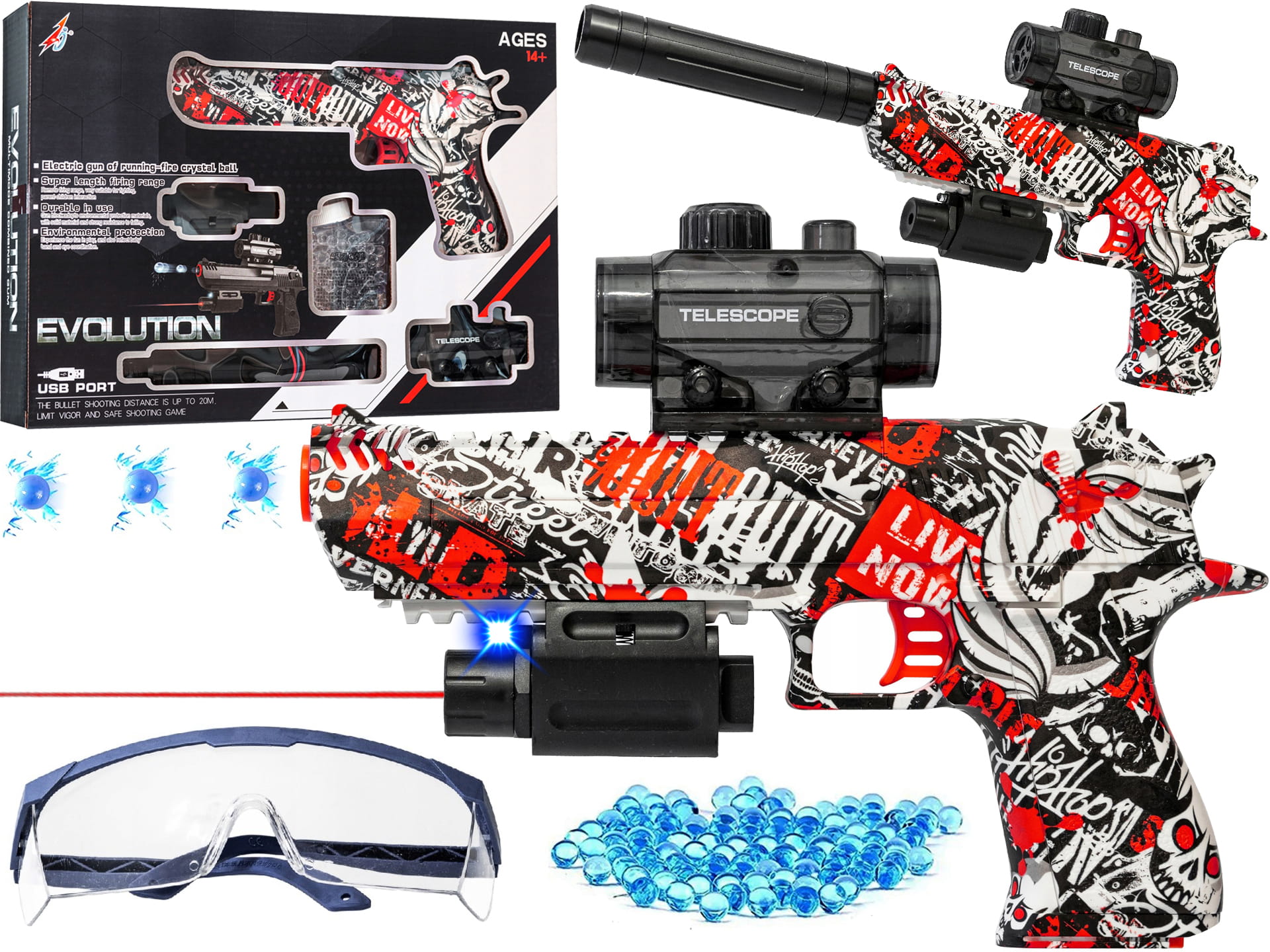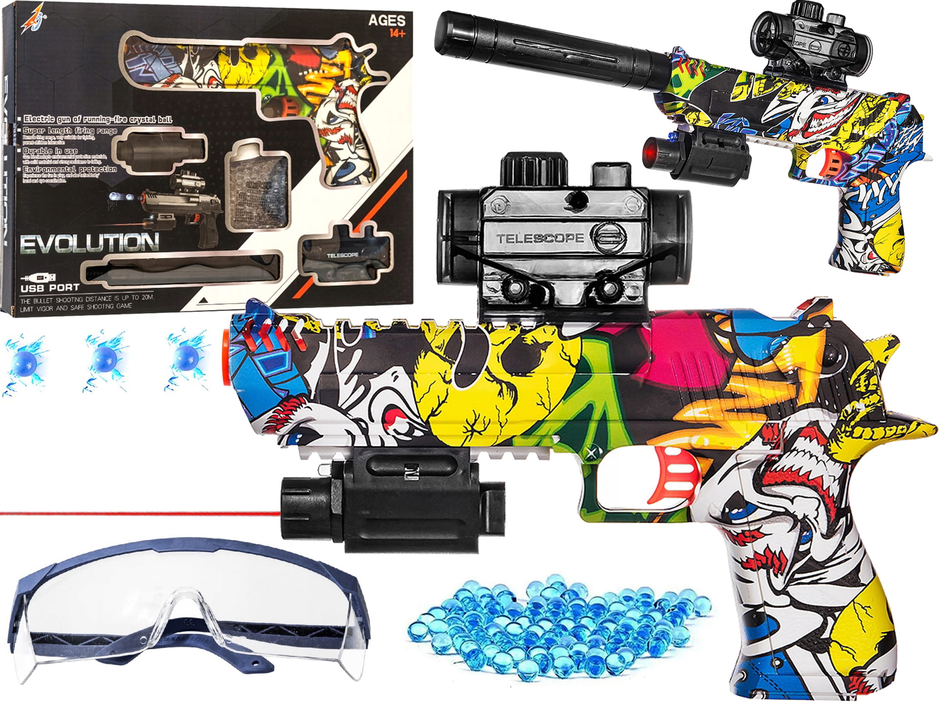 PISTOLET NA KULKI ŻELOWE Okulary KARABIN Automat Z TŁUMIKIEM AUTOMATYCZNY