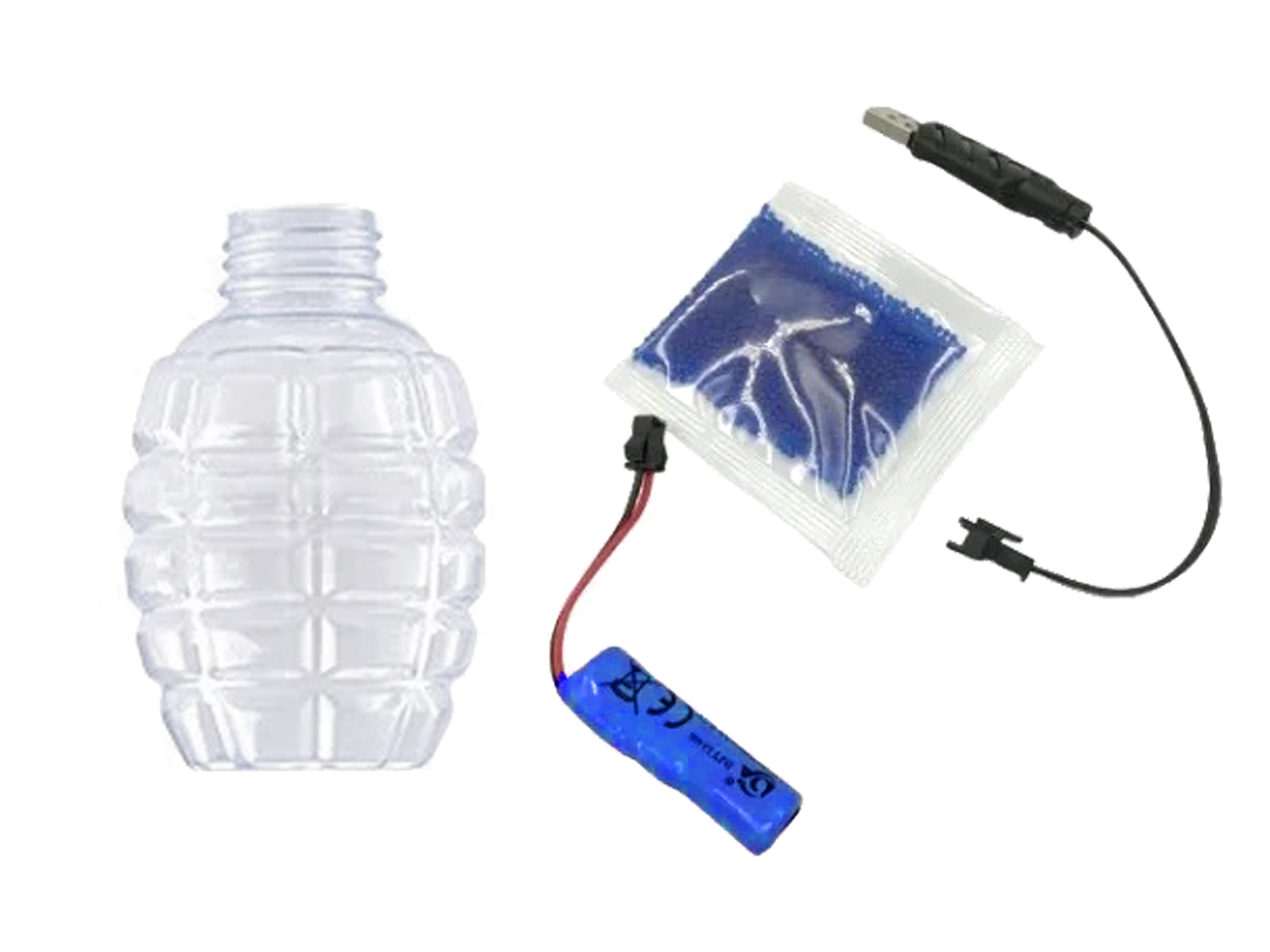 do specjalnego pojemnika w postaci granatu i przyczepić do broni.