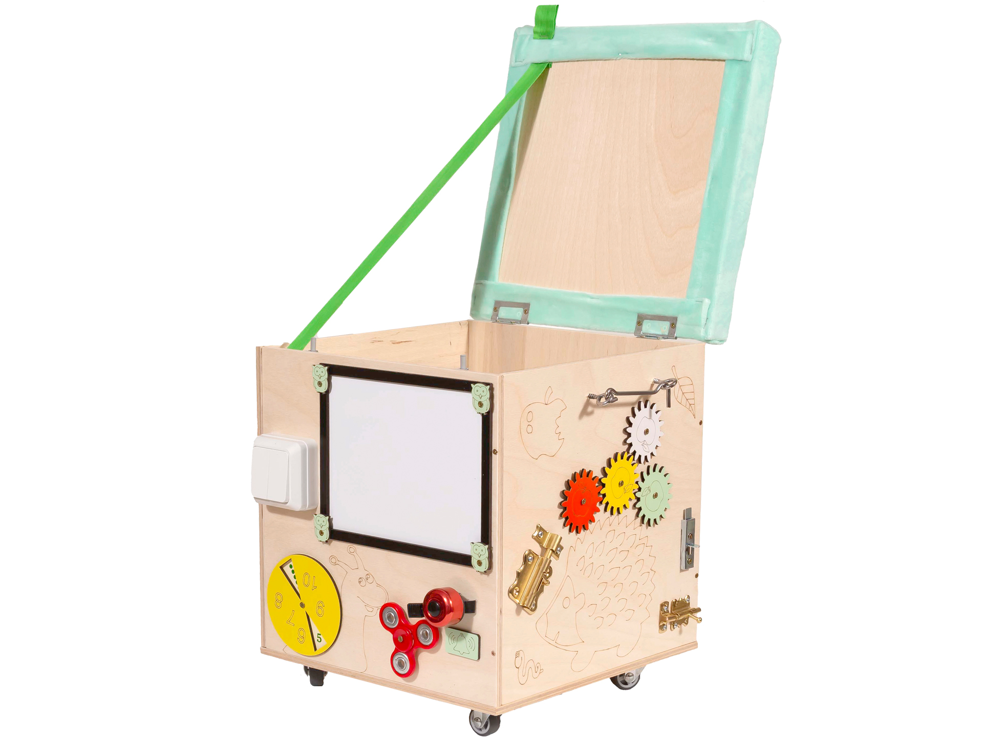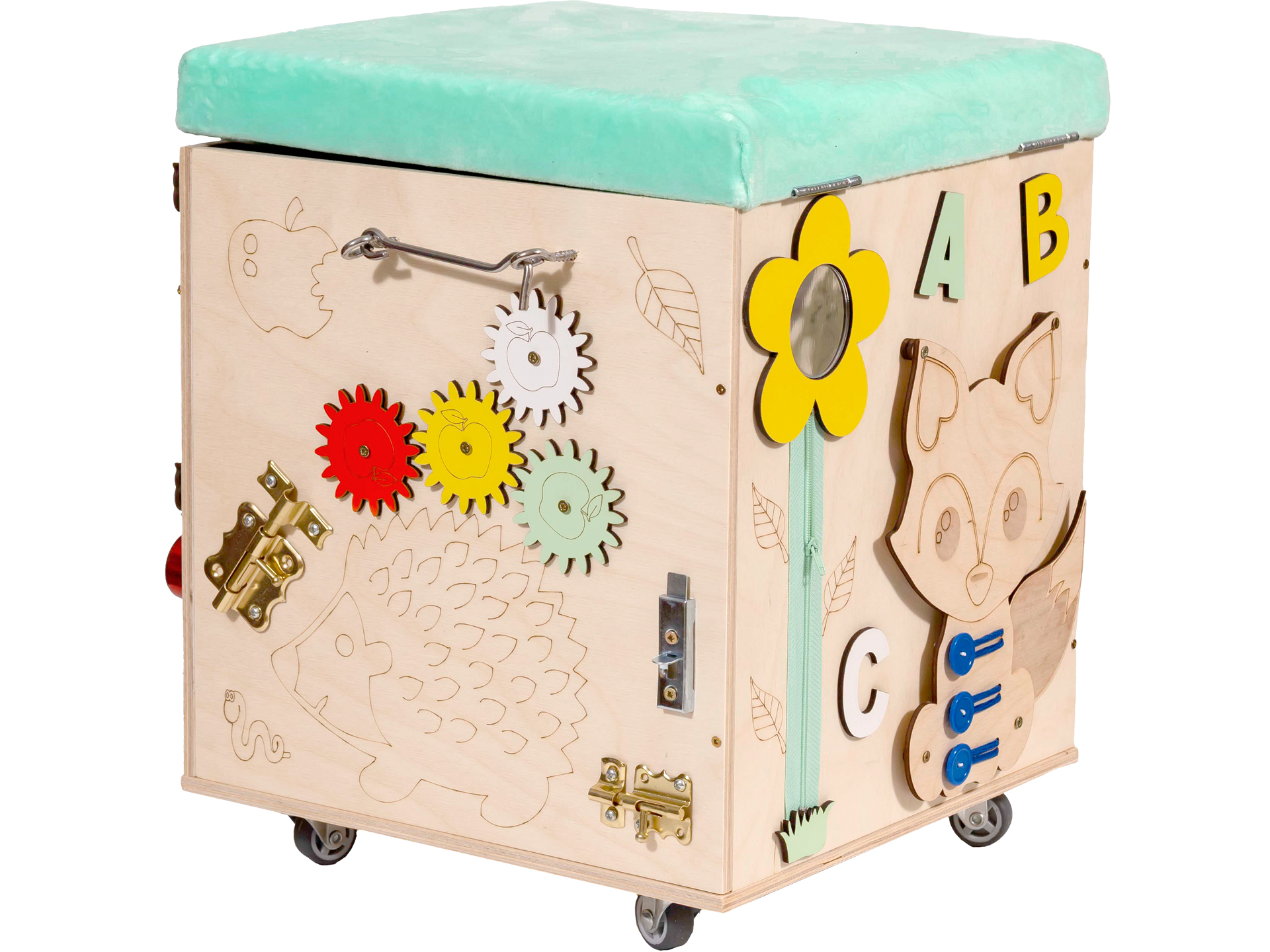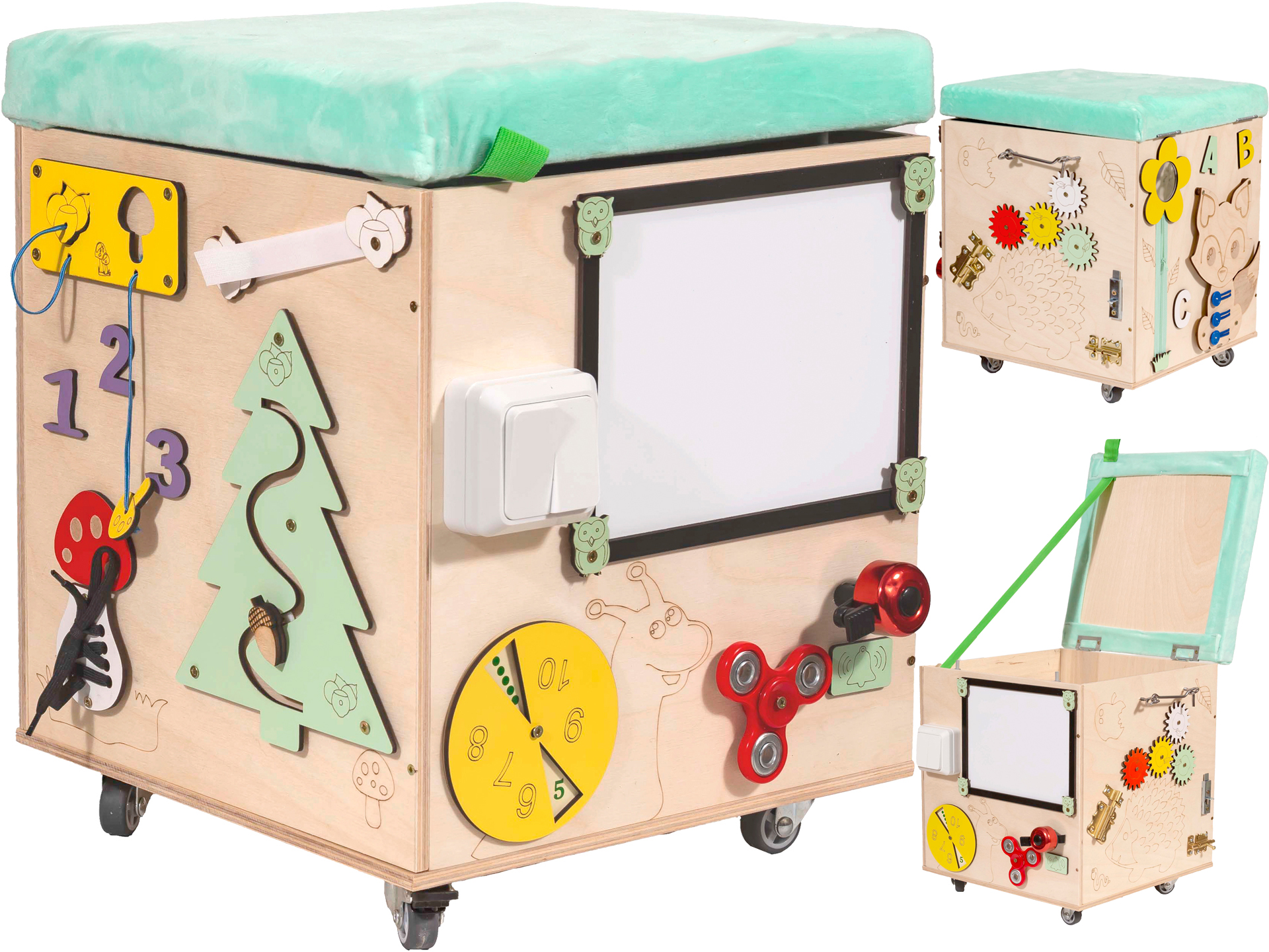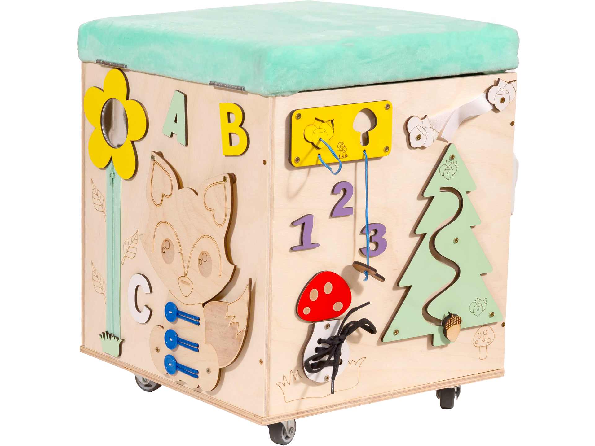 PUFA Manipulacyjna z siedziskiem Drewniana Montessori SENSORYCZNA Tablica kostka
