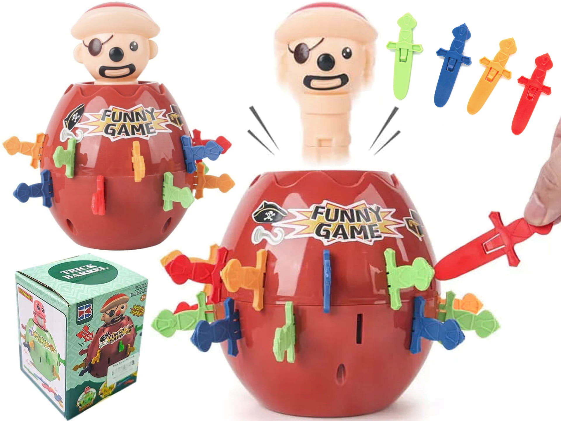 Piracka BECZKA Gra Zręcznościowa WYSKAKUJĄCY SZALONY PIRAT Szable