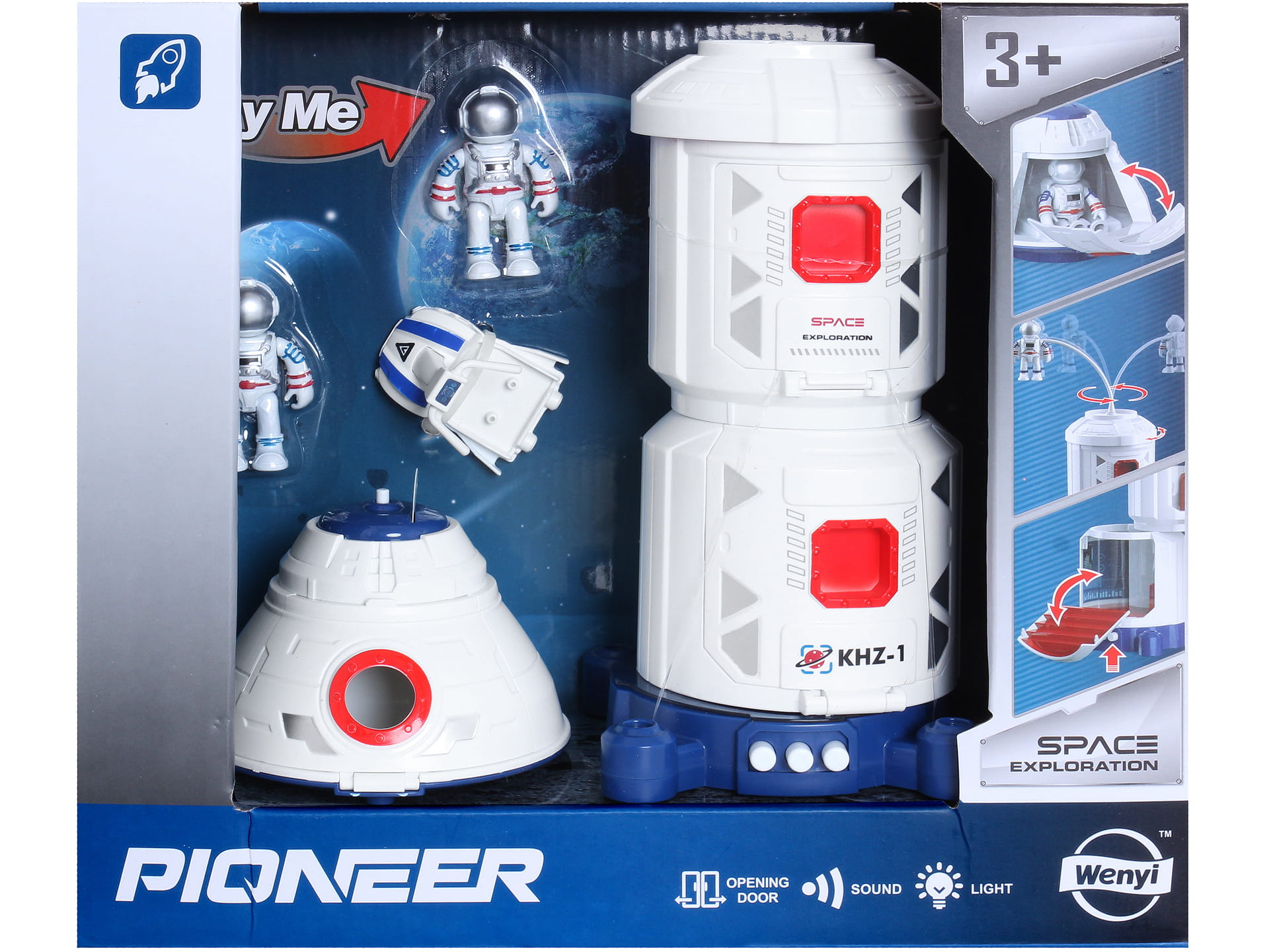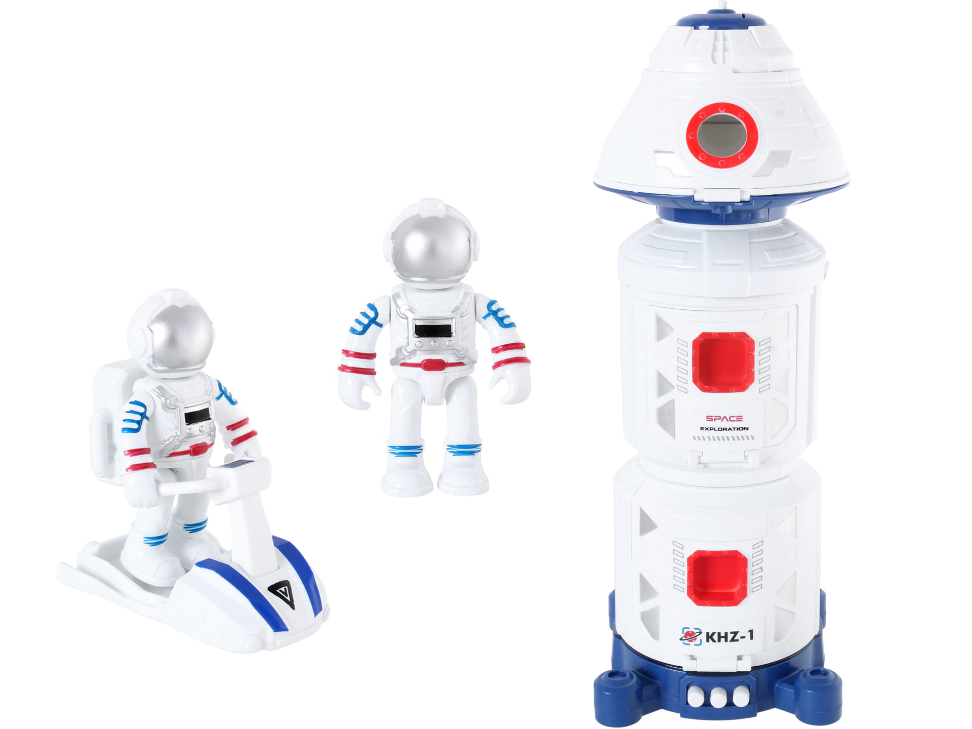 RAKIETA KOSMICZNA Baza Statek Spodek Ślizgacz Dźwięk Światło 2x ASTRONAUTA