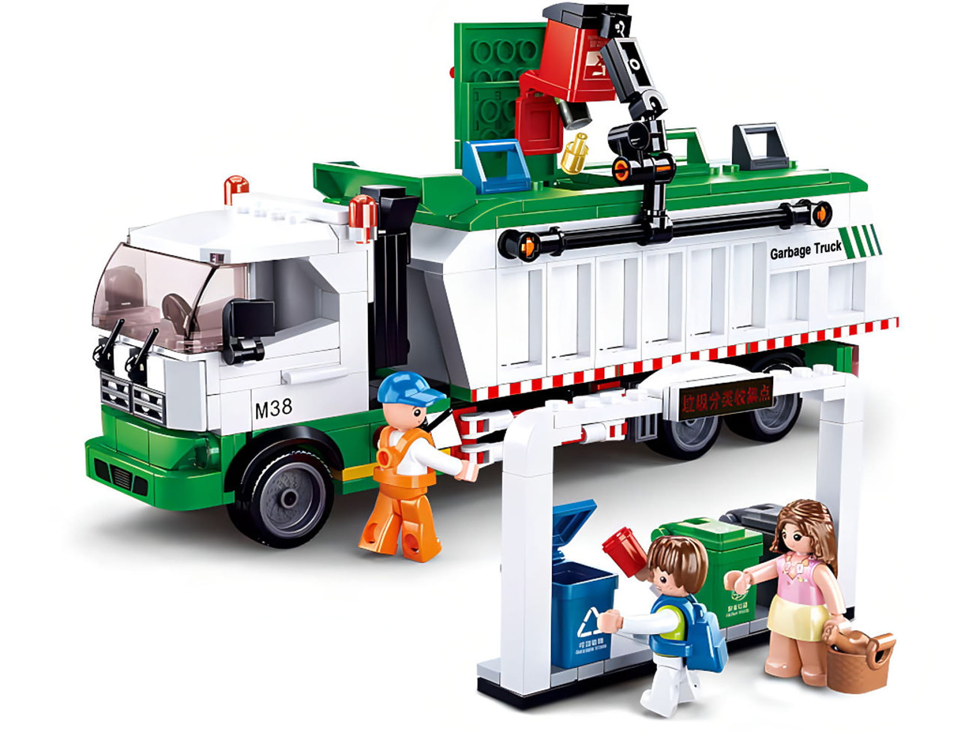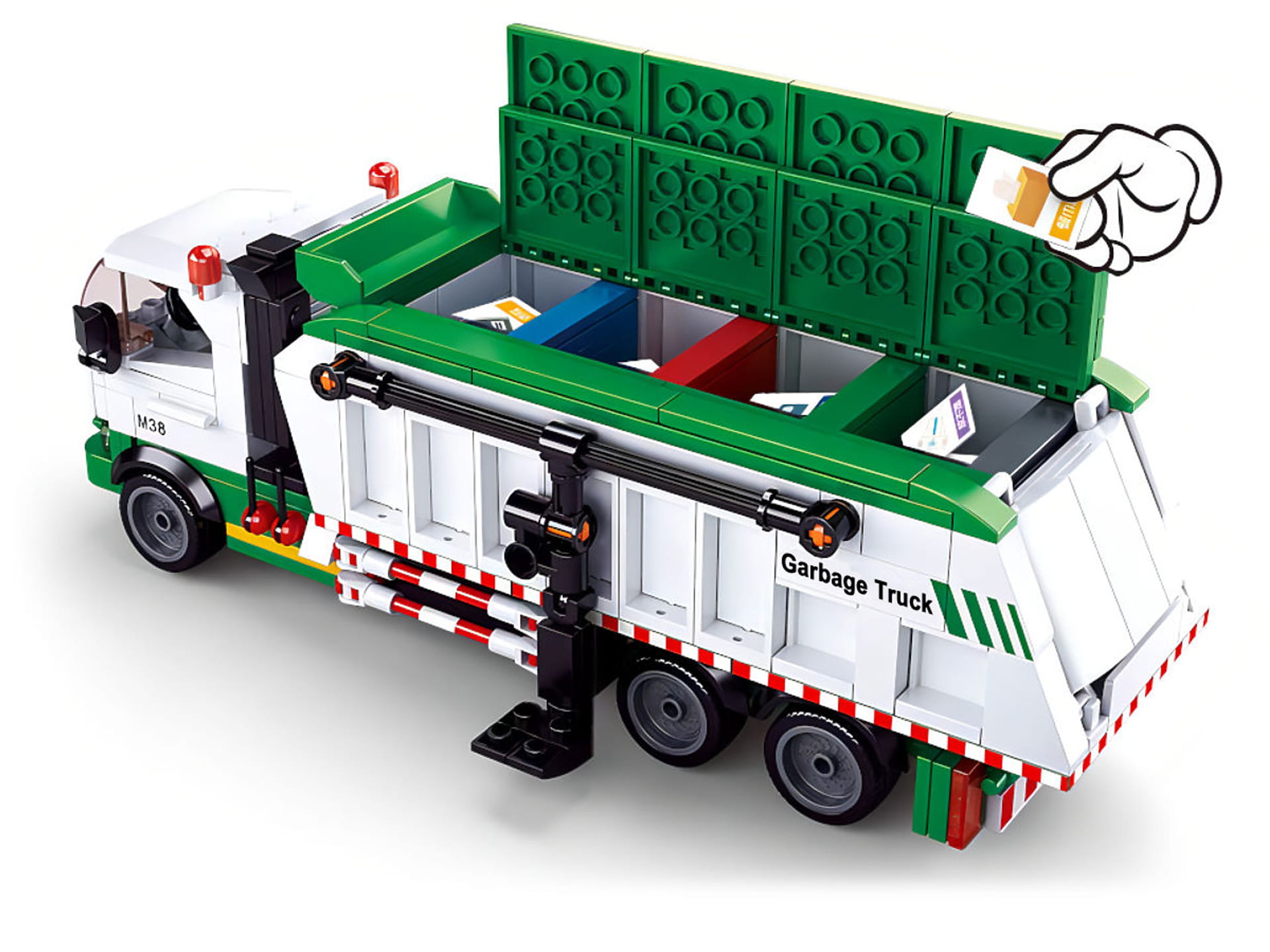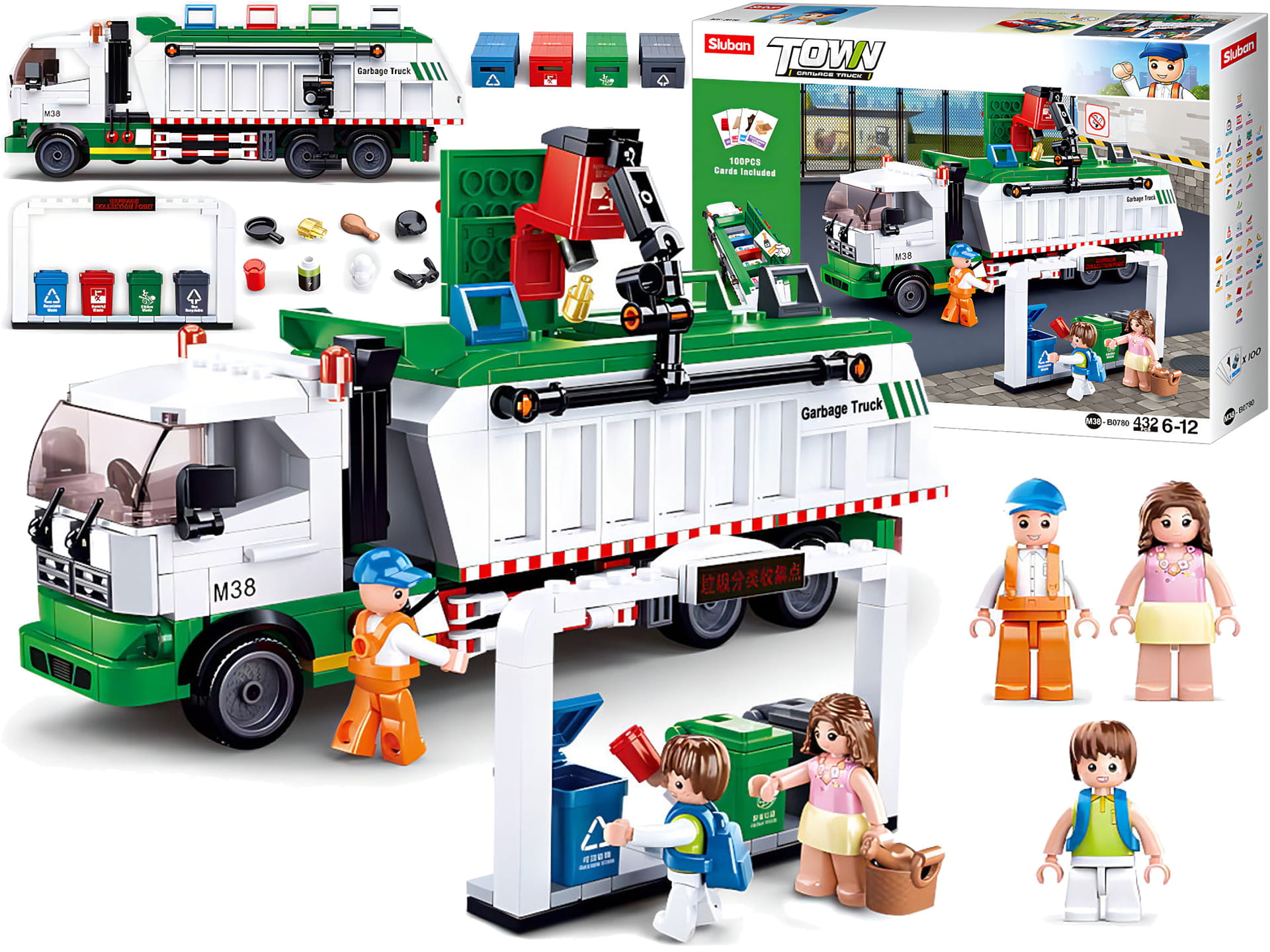 SLUBAN Klocki Konstrukcyjne CIĘŻARÓWKA ŚMIECIARKA Kosze do Segregacji B0780