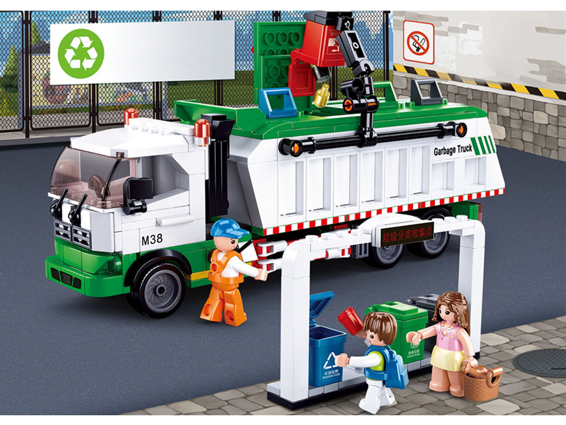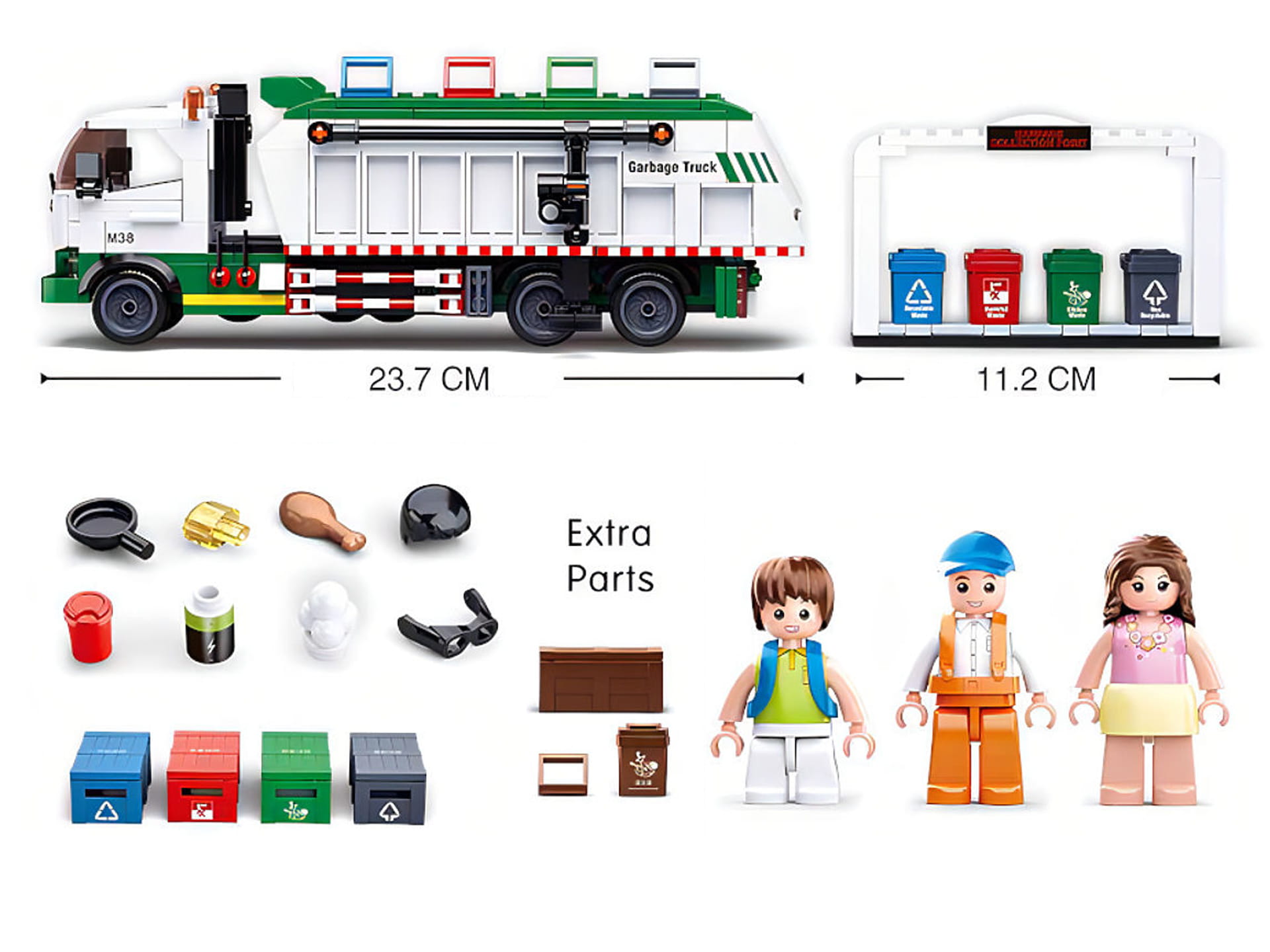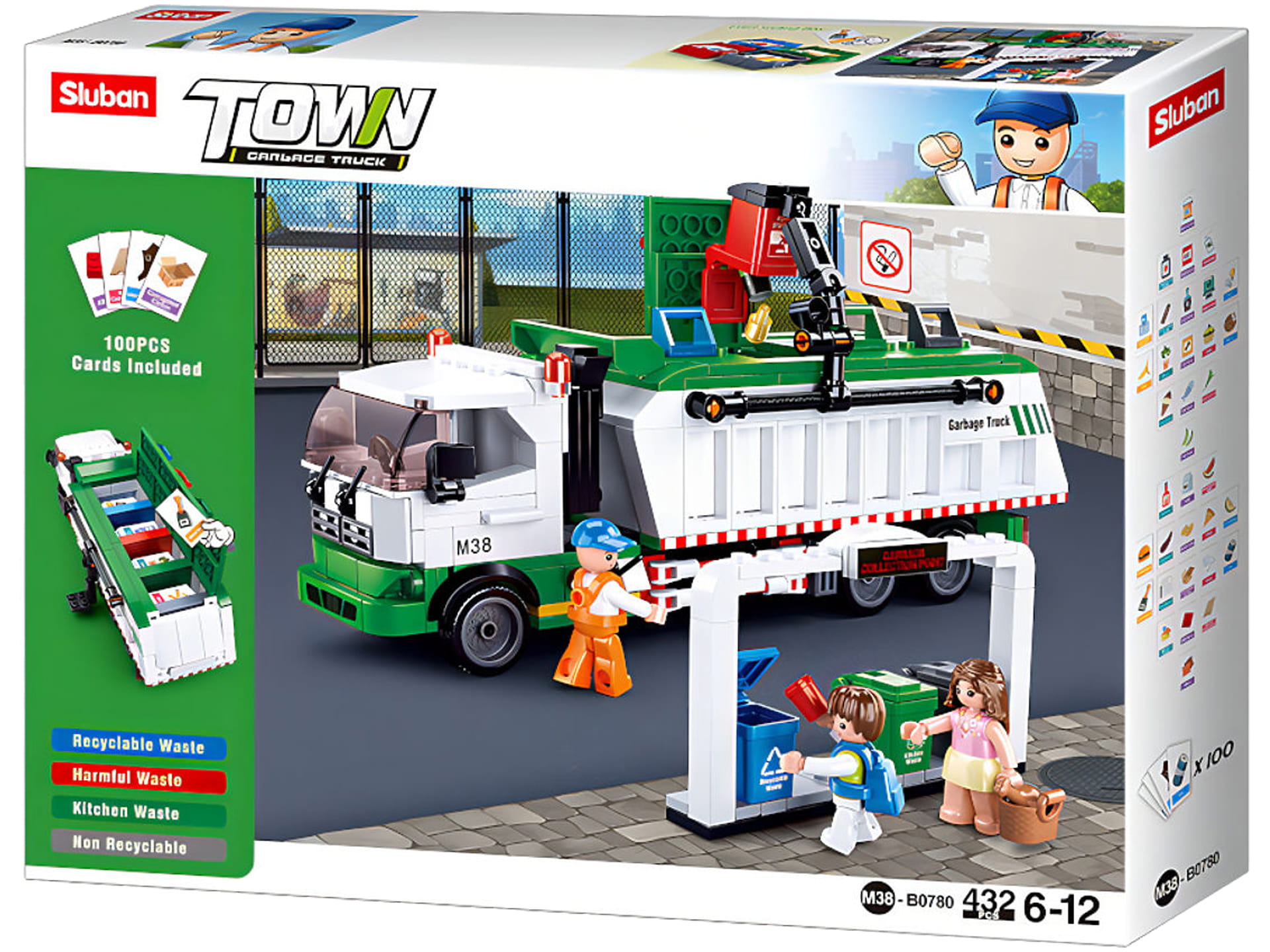 SLUBAN Klocki Konstrukcyjne CIĘŻARÓWKA ŚMIECIARKA Kosze do Segregacji B0780