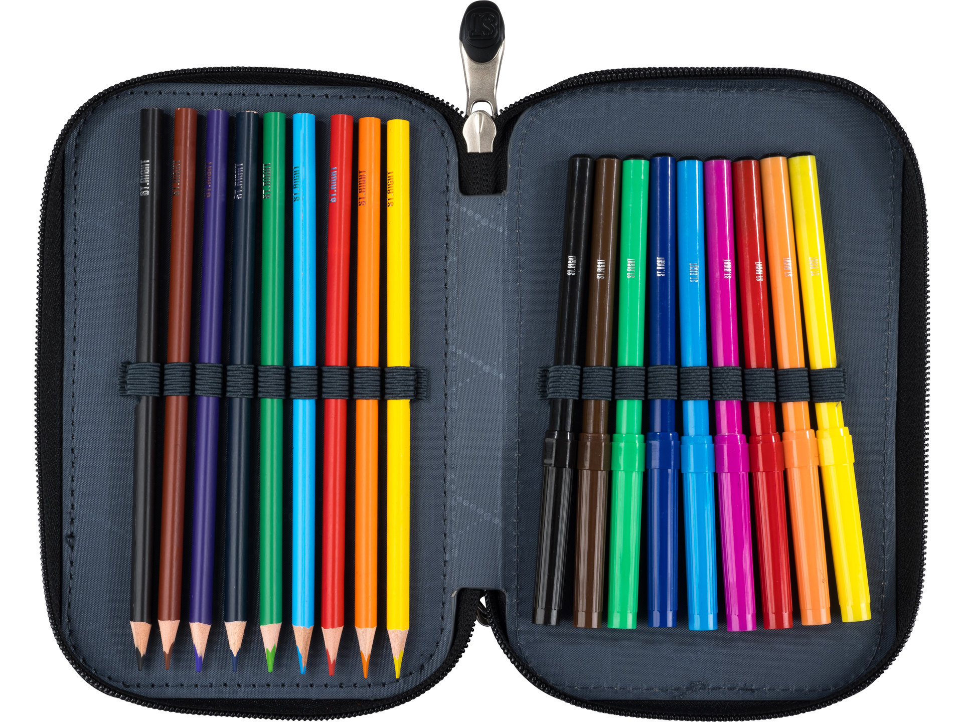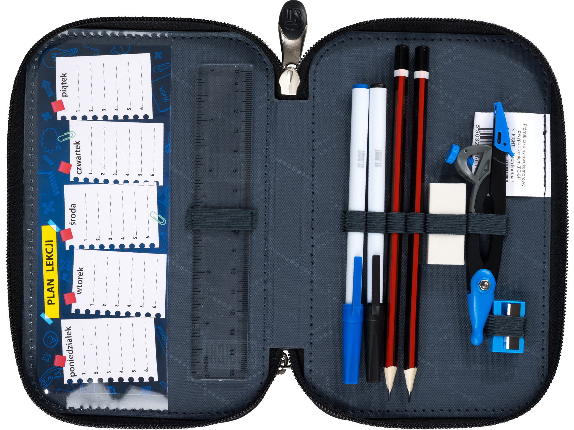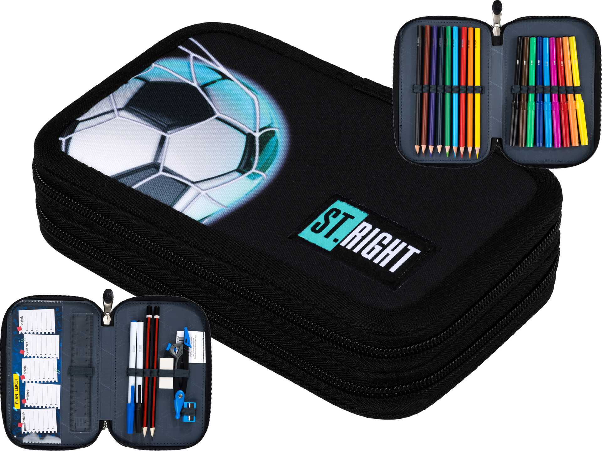 Piórnik szkolny dwukomorowy ST.RIGHT to rewelacyjny piórnik z wyposażeniem. Wykonany jest z trwałych i estetycznych materiałów dobrej jakości.