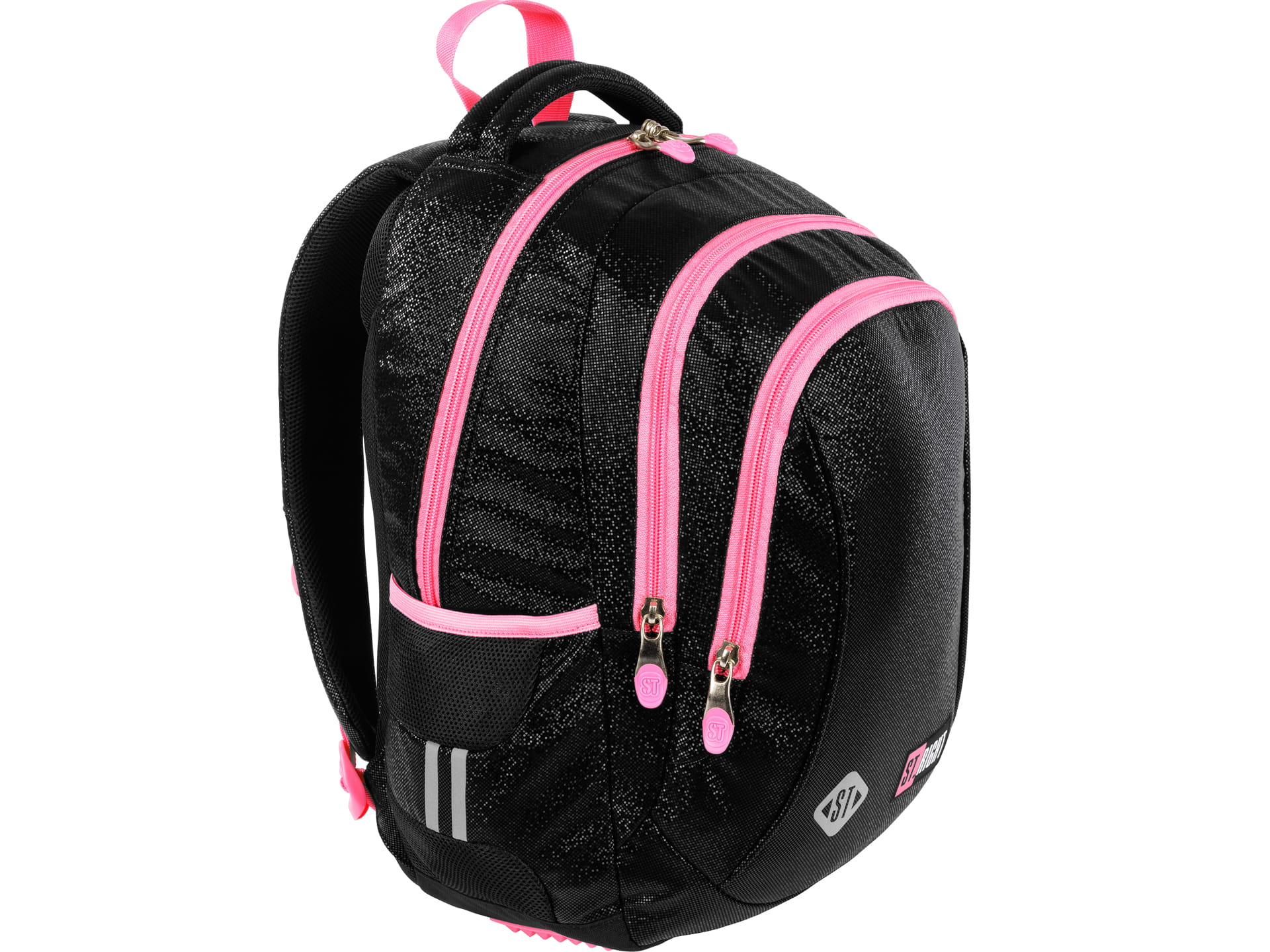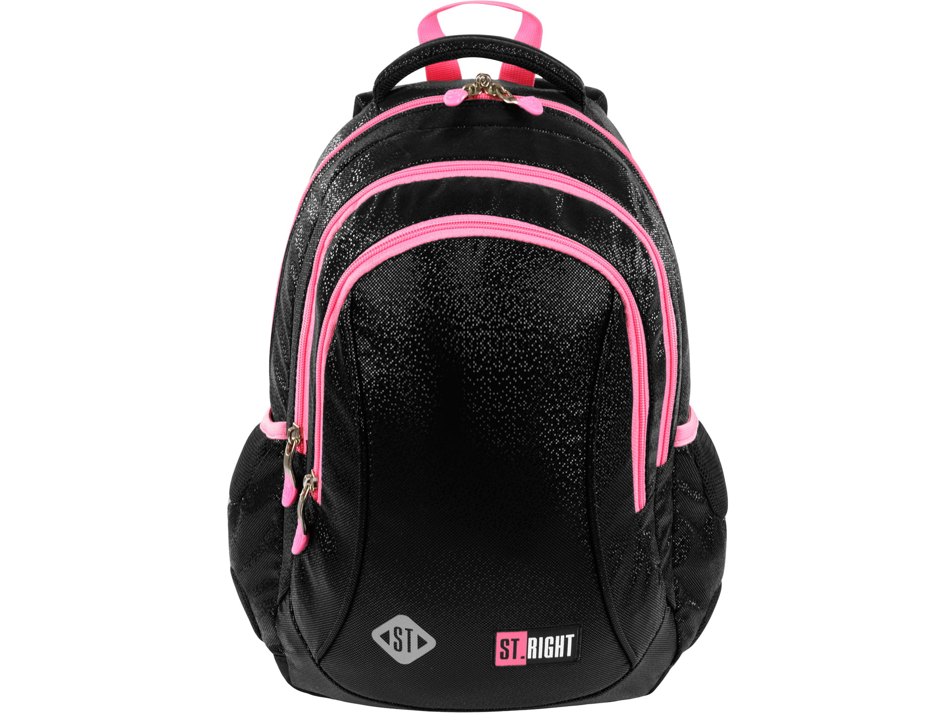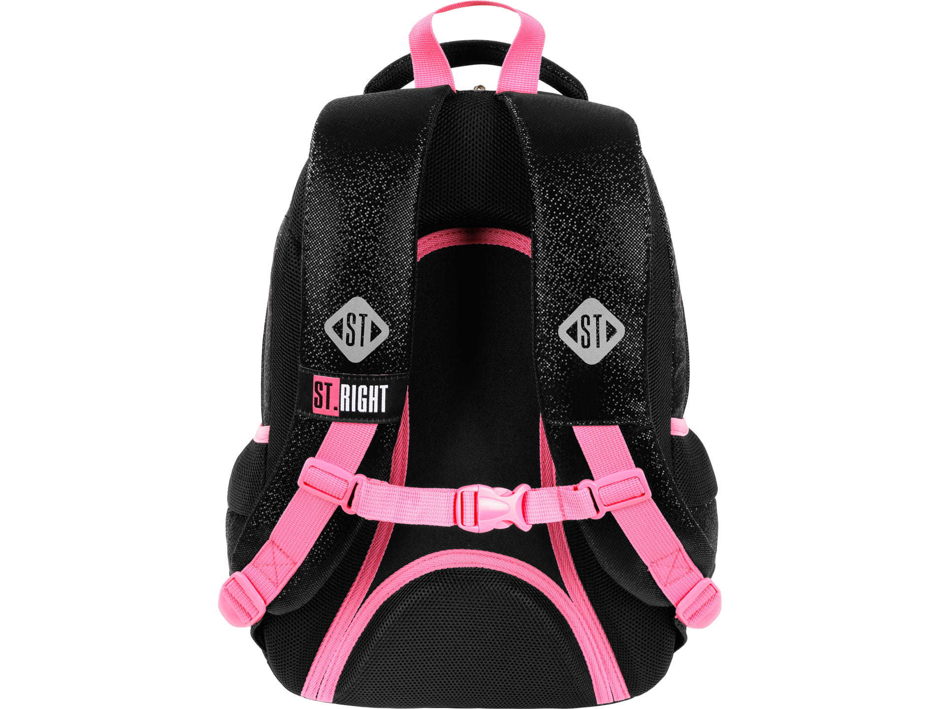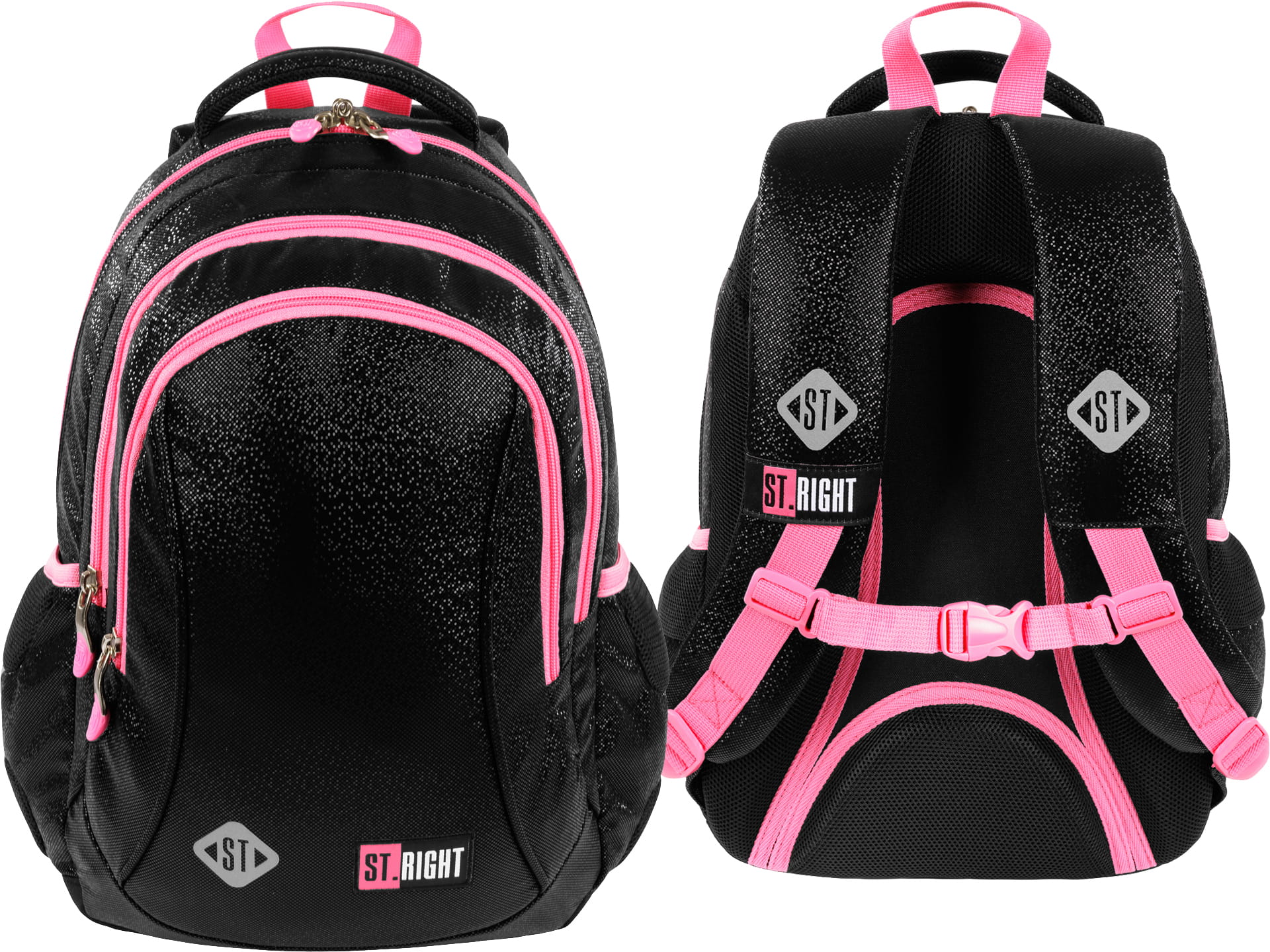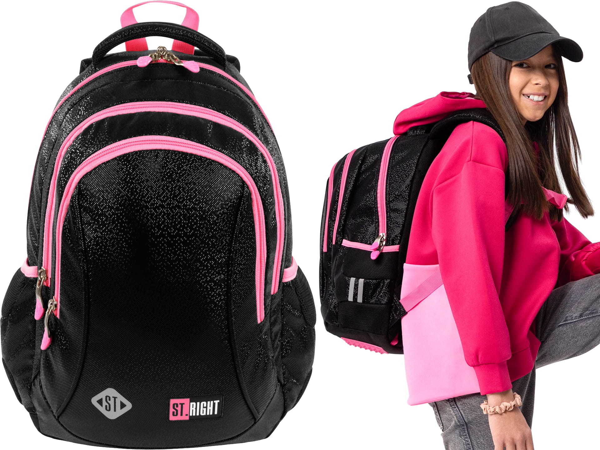 ST.RIGHT Szkolny PLECAK 3-komorowy Młodzieżowy BP26 BLACK GLITTER Błysk