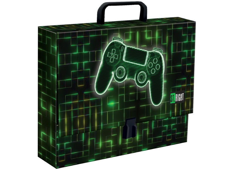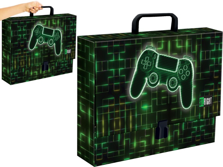 ST.RIGHT TECZKA Szkolna XL z RĄCZKĄ Twarda A4 GRUBA 9 cm NEON PAD Gamer