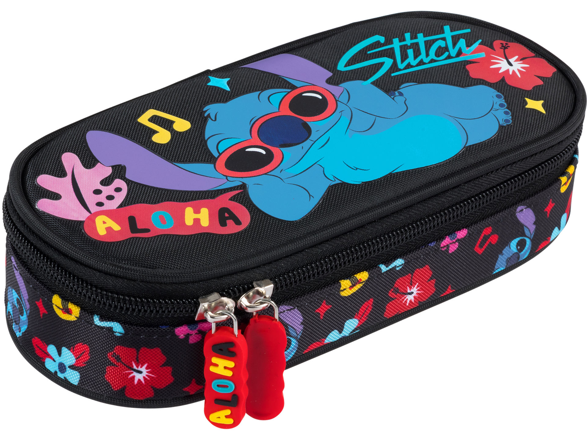 STITCH PIÓRNIK Szkolny JEDNOKOMOROWY Usztywniany Saszetka BLACK Aloha Disney