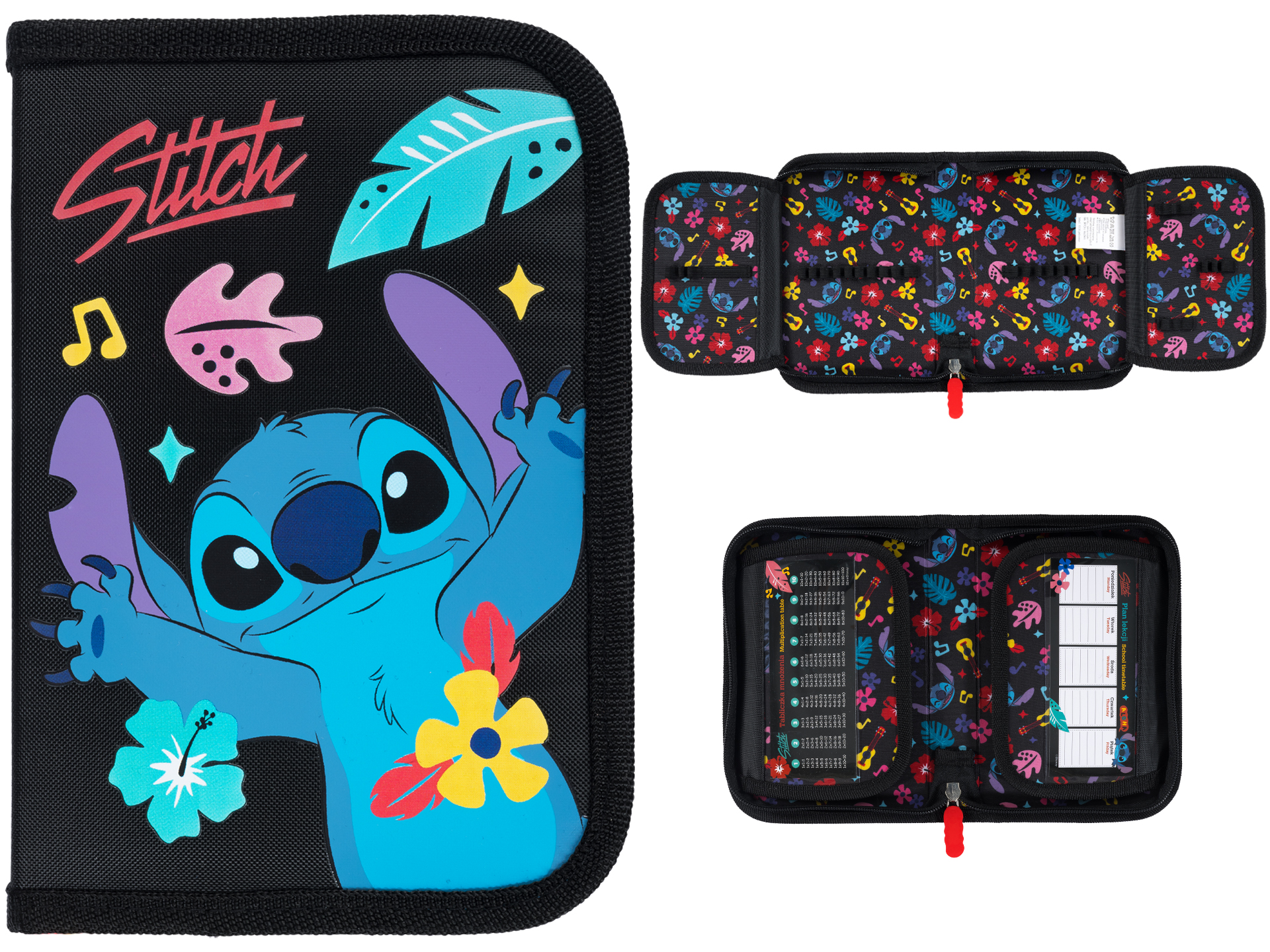 Piórnik dwuklapkowy Stitch to rewelacyjny piórnik szkolny, efektownie ozdobiony grafiką z bajki Disney Stitch & Lilo.