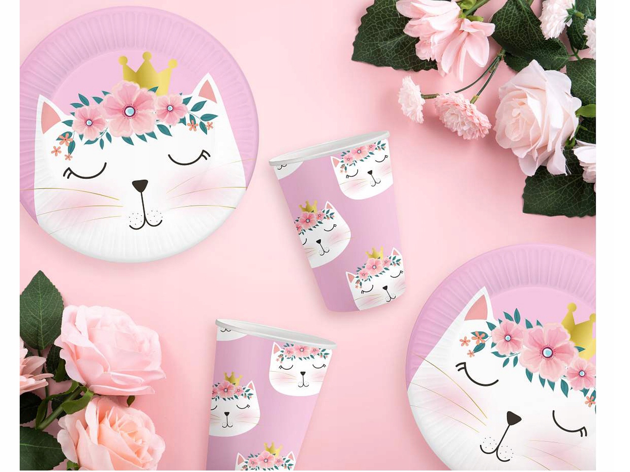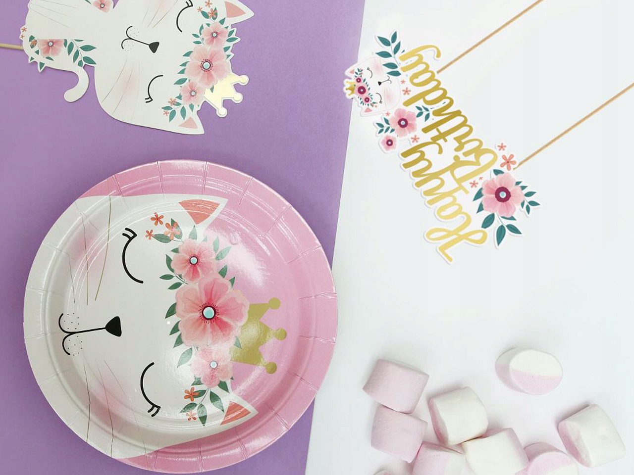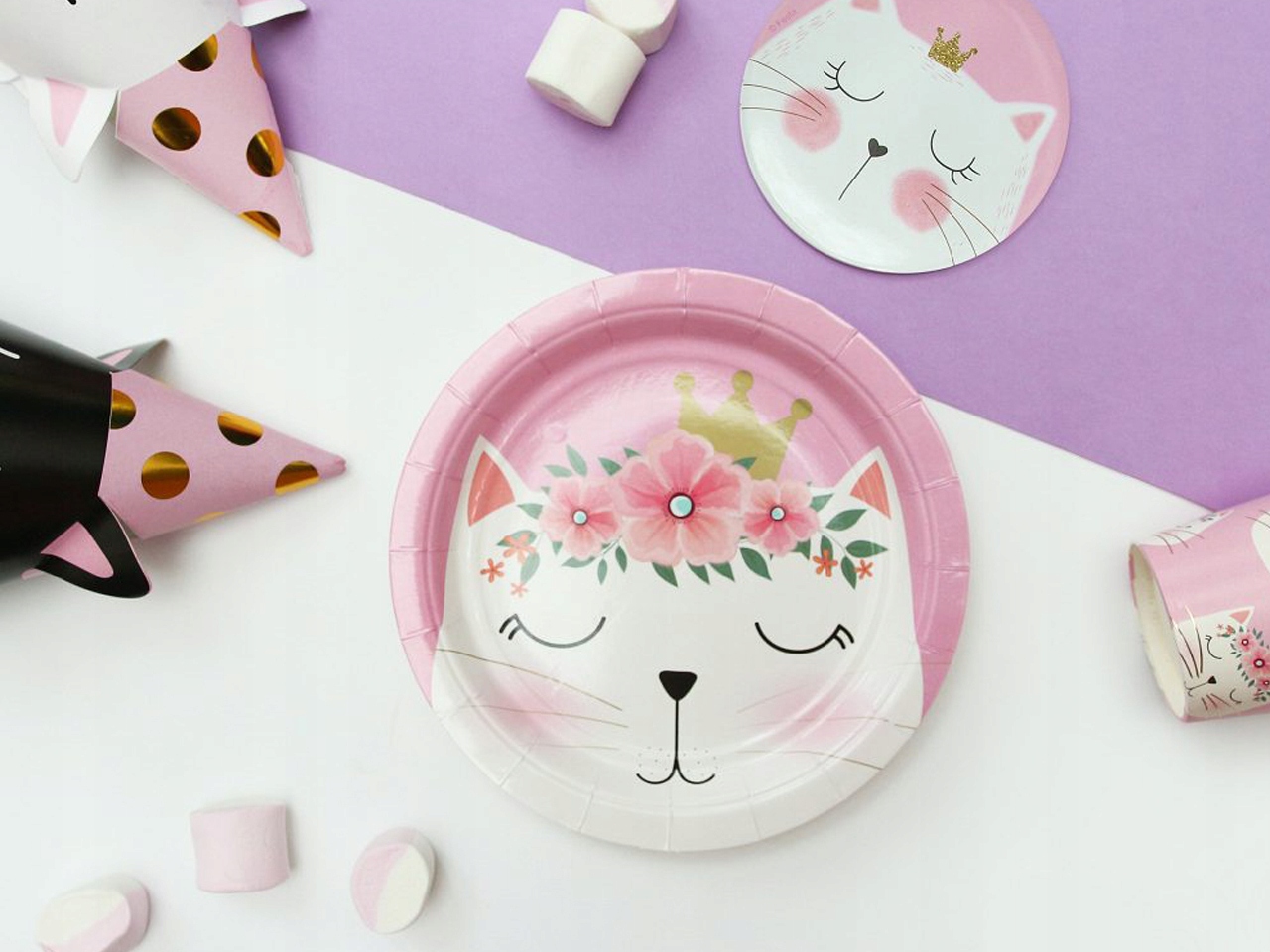 TALERZYKI PAPIEROWE urodzinowe KOTEK kot party TALERZYK 6 szt talerz 18 cm